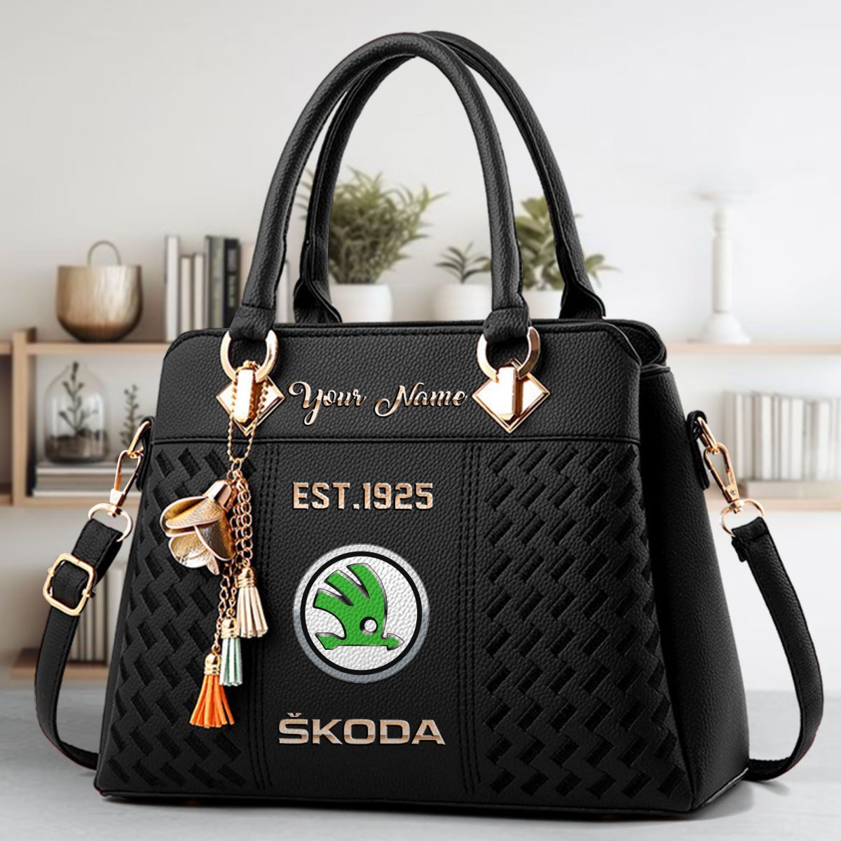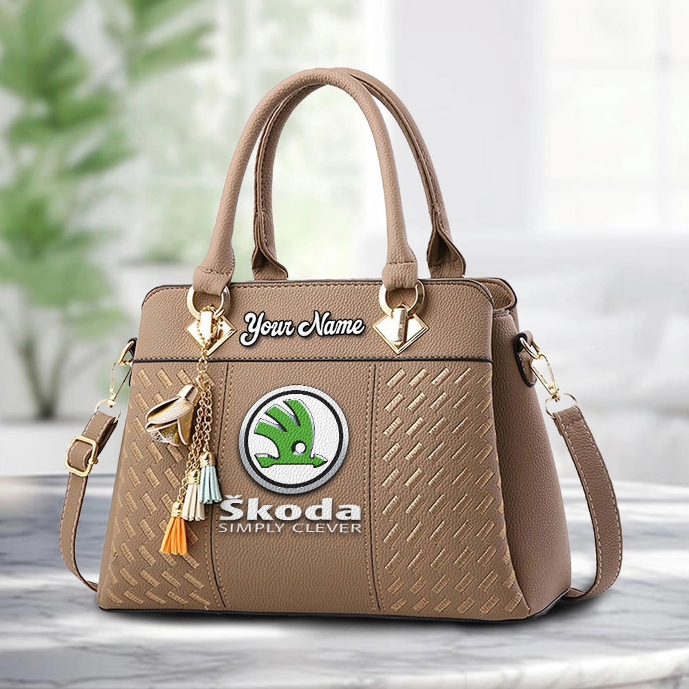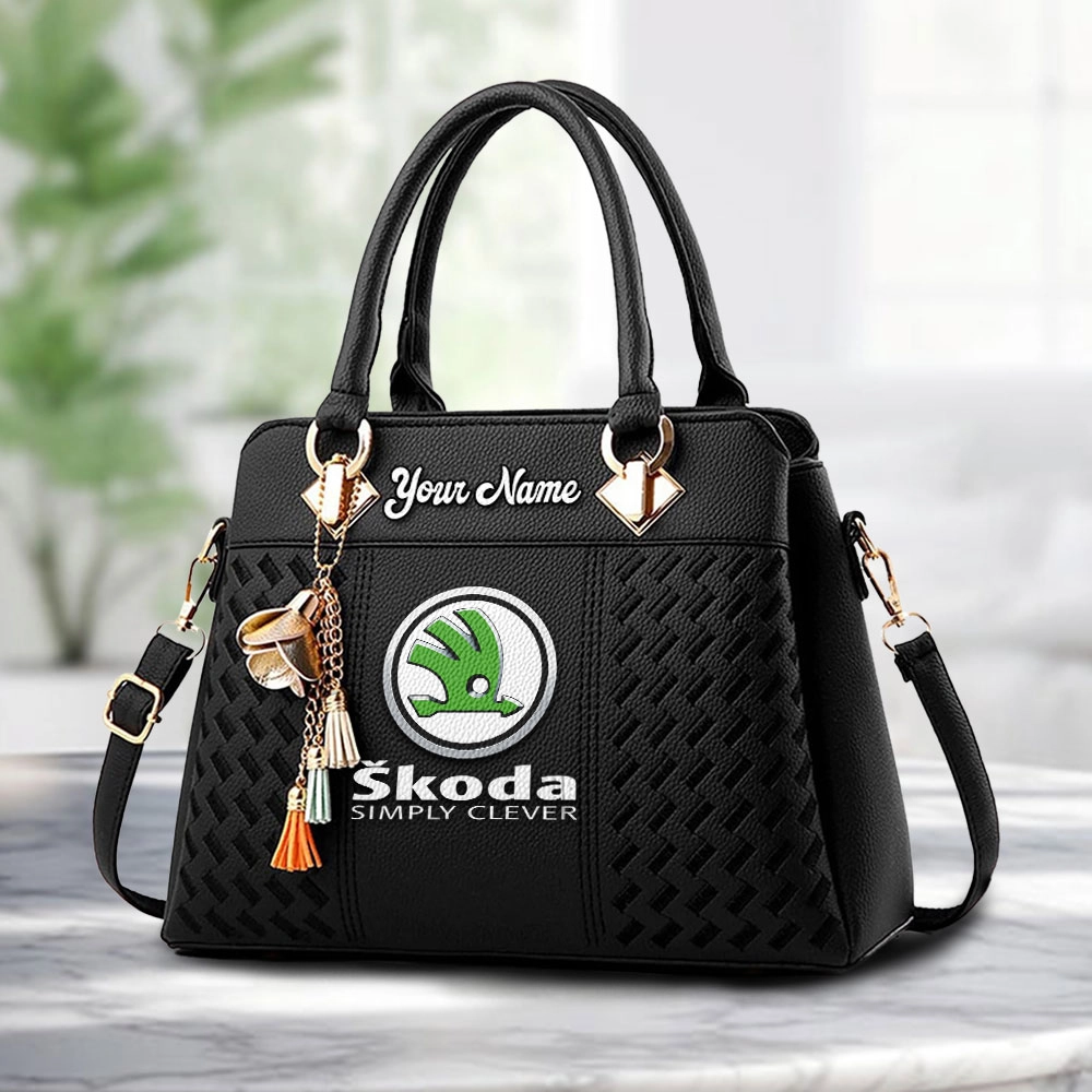 Skoda Logo Personalized PU Leather Handbag Custom Name For Women