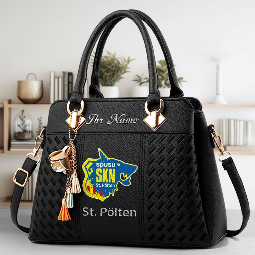 SKN St. Polten Logo Crossbody Zip Hand Bag With Tassel Custom Name For Women