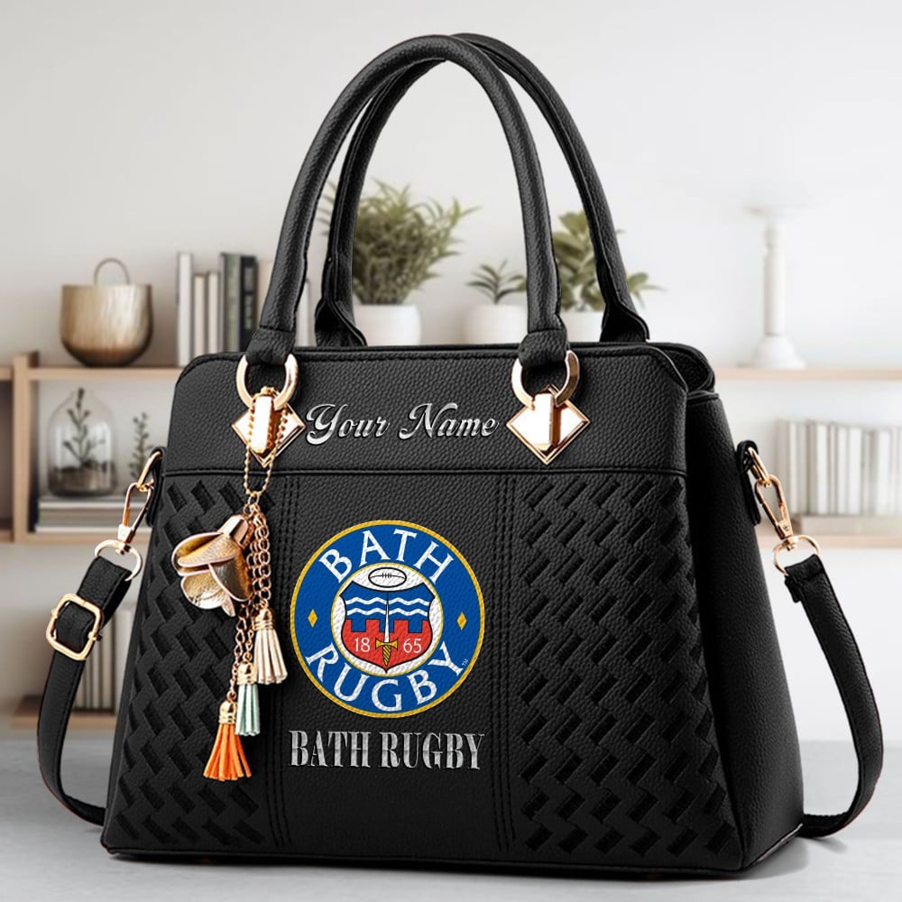 Bath Rugby Logo Crossbody Zip Hand Bag With Tassel Custom Name For Women