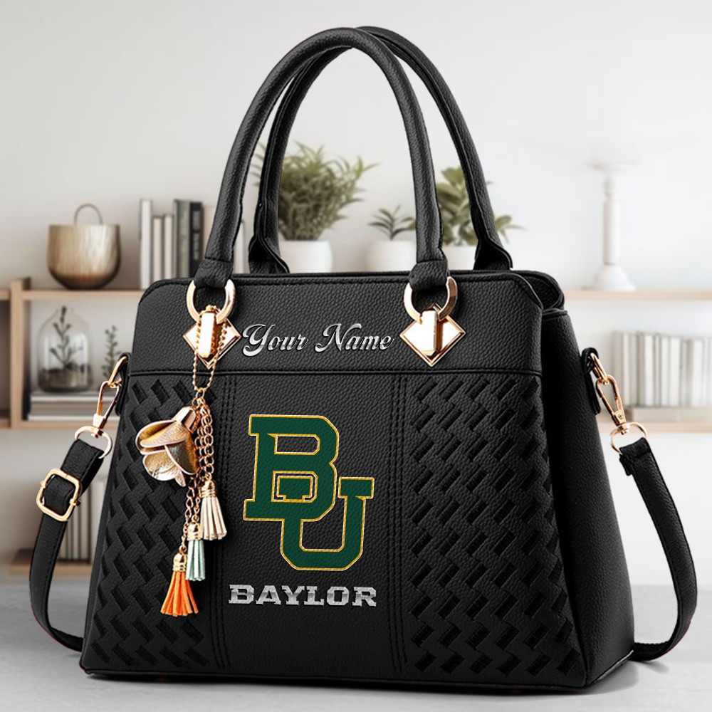 Baylor Bears Logo Crossbody Zip Hand Bag With Tassel Custom Name For Women