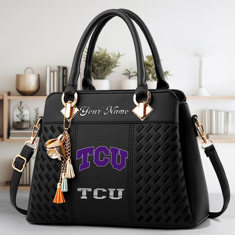 TCU Horned Frogs Logo Crossbody Zip Hand Bag With Tassel Custom Name For Women