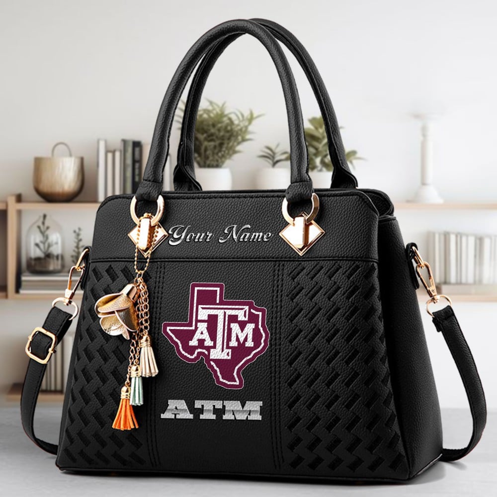 Texas A&M Aggies Logo Crossbody Zip Hand Bag With Tassel Custom Name For Women