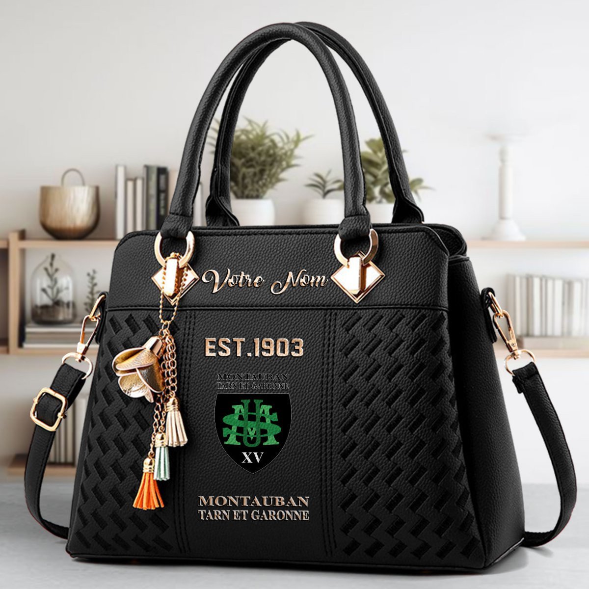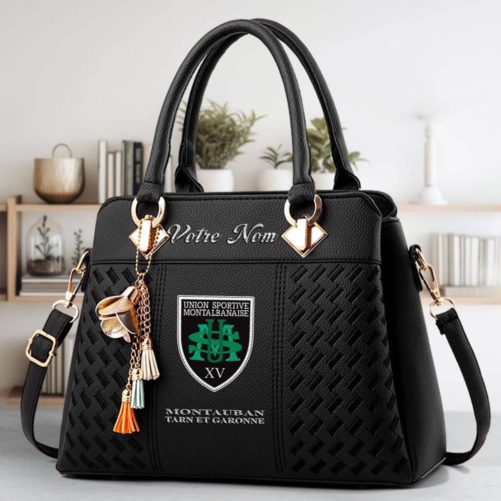 US Montauban Logo Crossbody Zip Hand Bag With Tassel Custom Name For Women