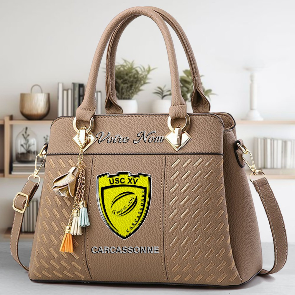 US Carcassonne Logo Crossbody Zip Hand Bag With Tassel Custom Name For Women