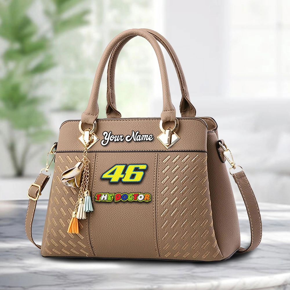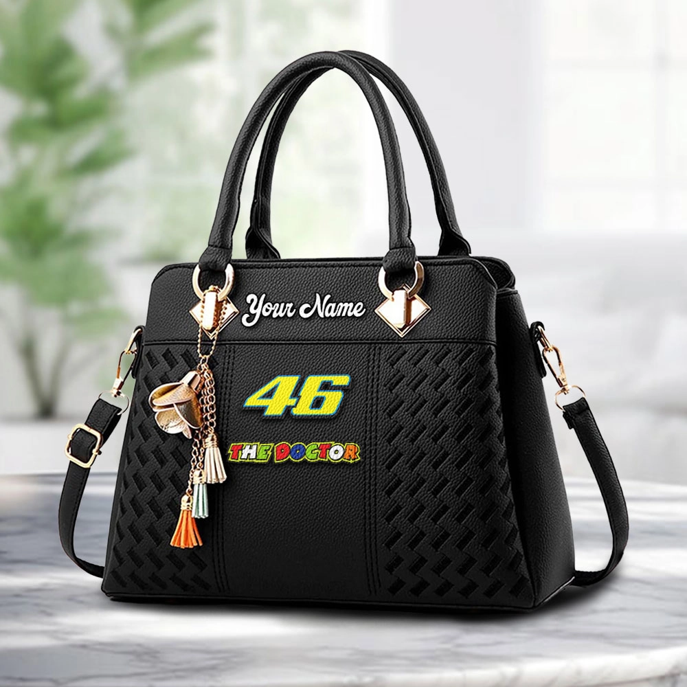 Valentino Rossi 46 Logo Personalized PU Leather Handbag Custom Name For Women