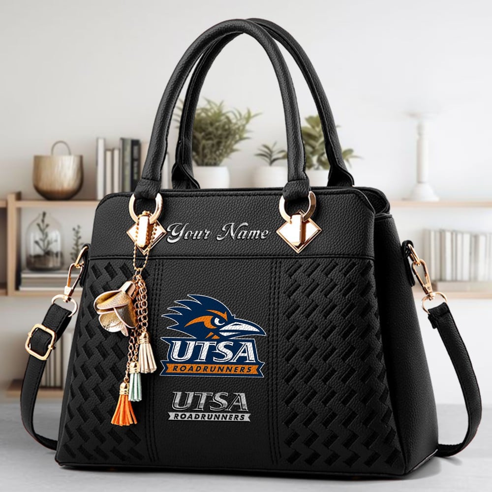 Utsa Roadrunners Logo Crossbody Zip Hand Bag With Tassel Custom Name For Women
