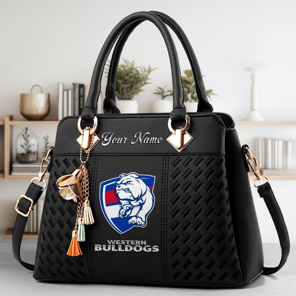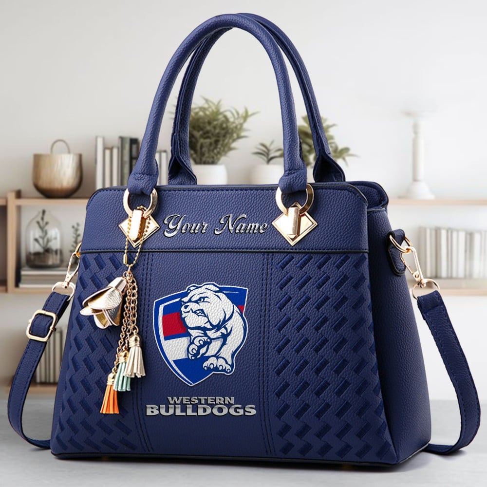 Western Bulldogs Logo Crossbody Zip Hand Bag With Tassel Custom Name For Women