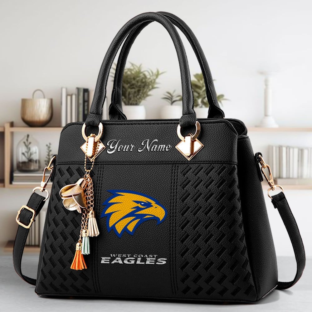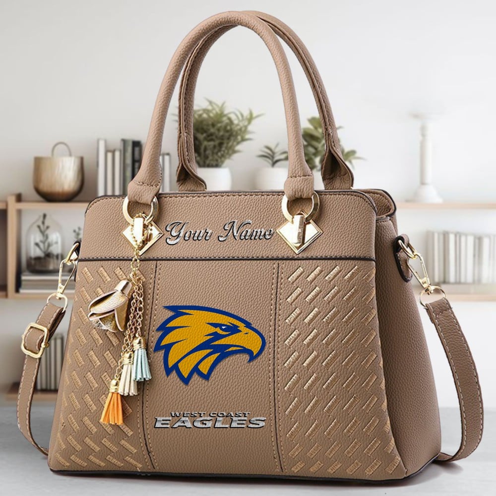 West Coast Eagles Logo Crossbody Zip Hand Bag With Tassel Custom Name For Women