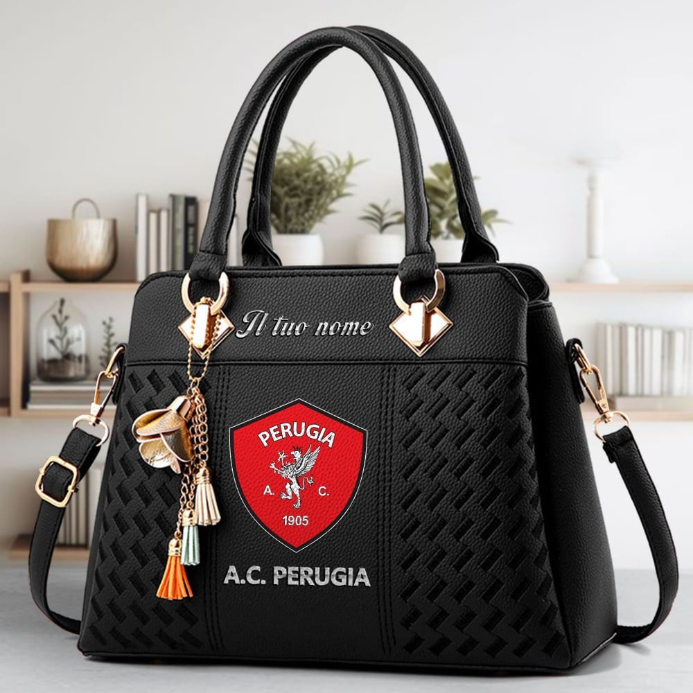 A.C. Perugia Logo Crossbody Zip Hand Bag With Tassel Custom Name For Women