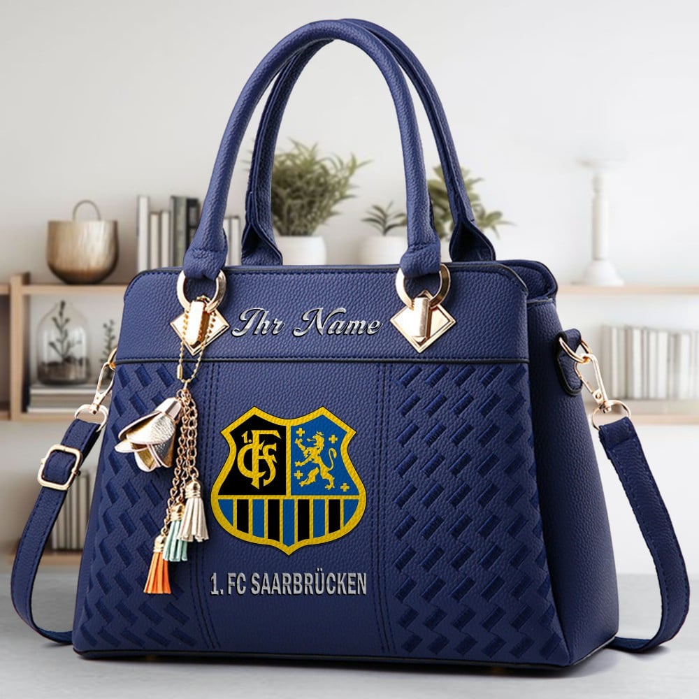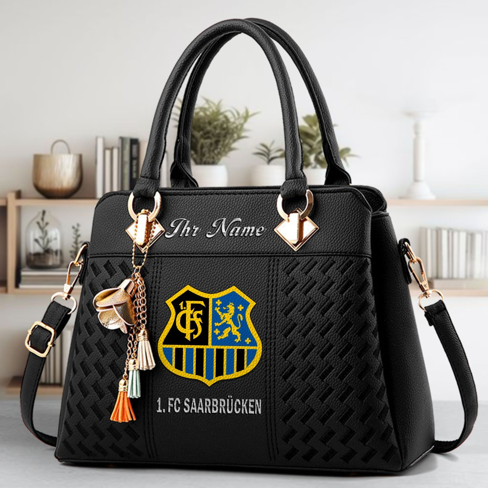 1. FC Saarbrucken Logo Crossbody Zip Hand Bag With Tassel Custom Name For Women