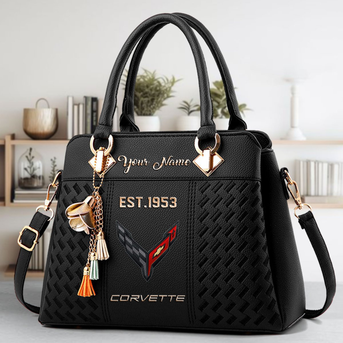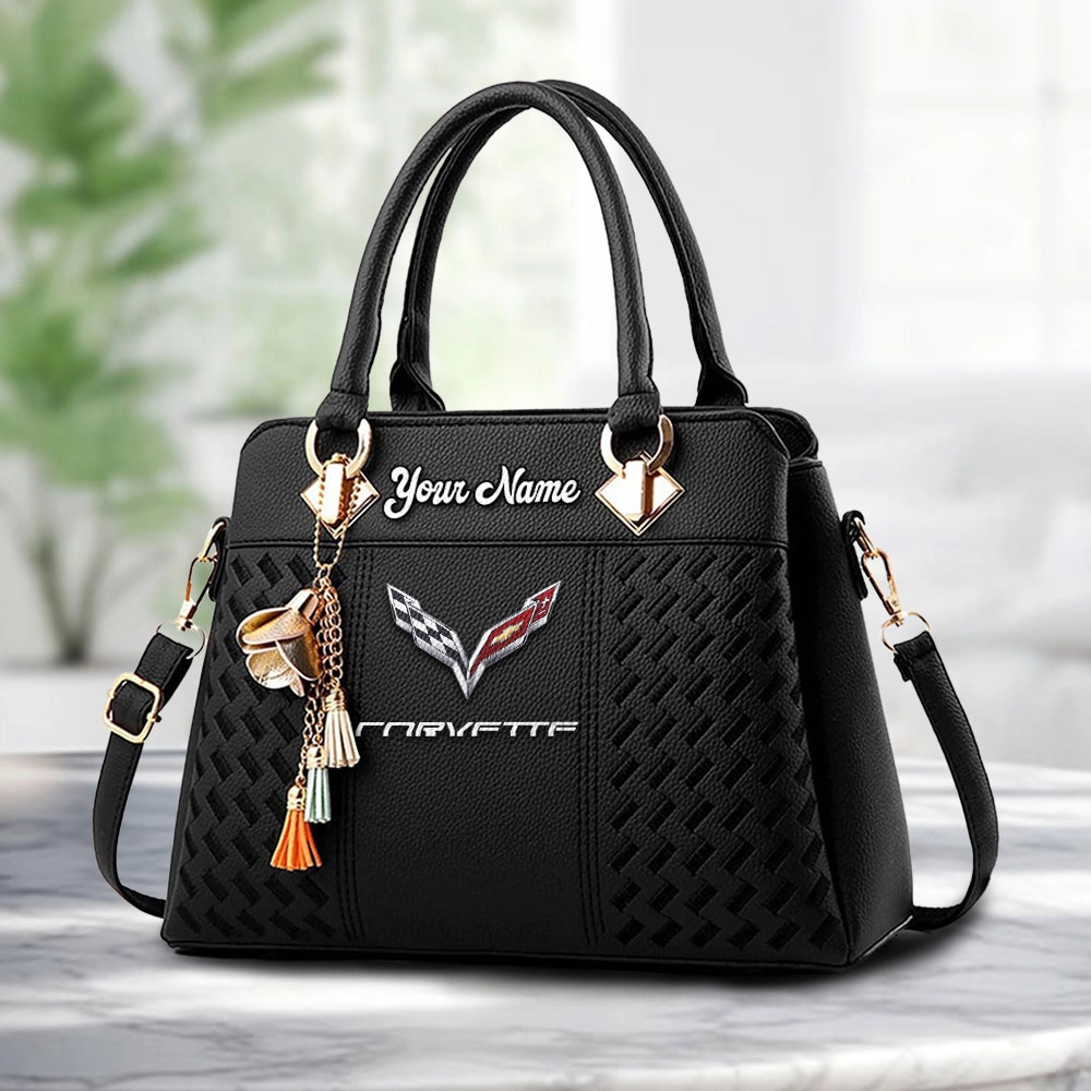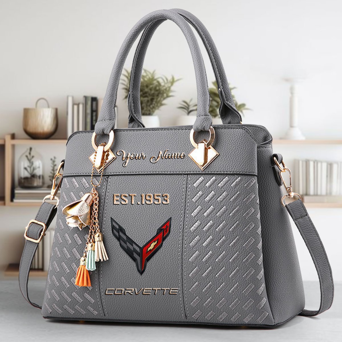 Chevrolet Corvette Logo Personalized PU Leather Handbag Custom Name For Women