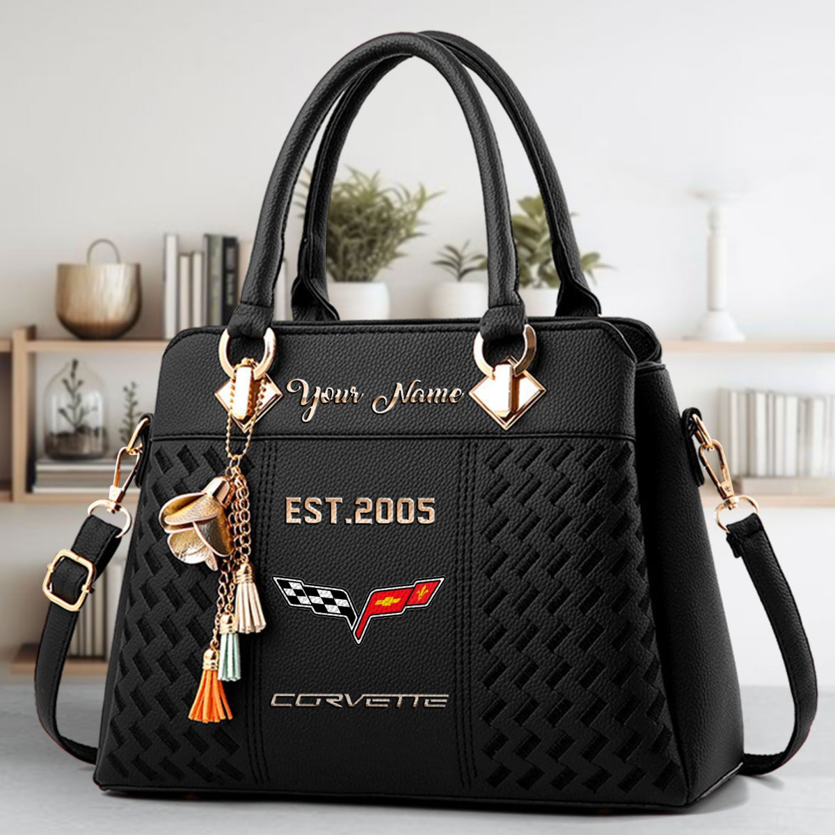 Corvette C8 Crossbody Zip Handbag With Tassel Custom Name For Women