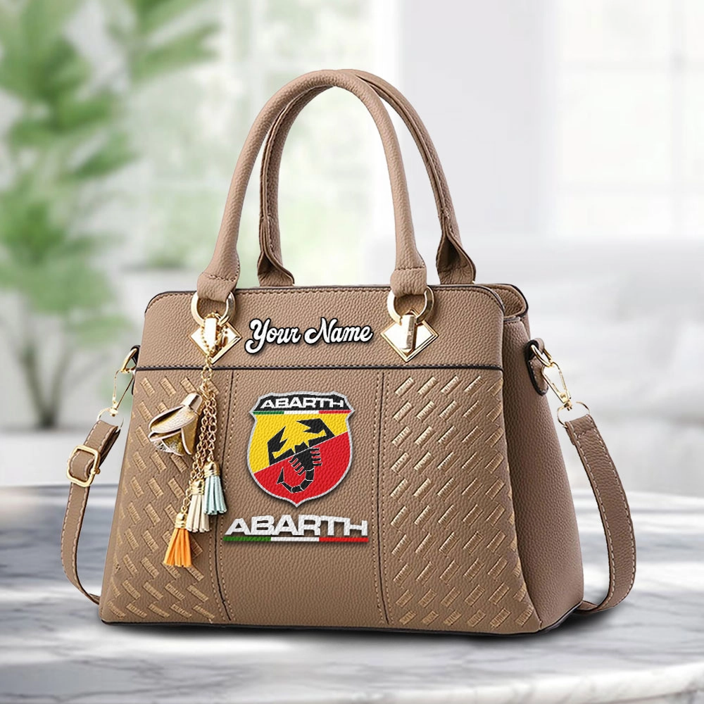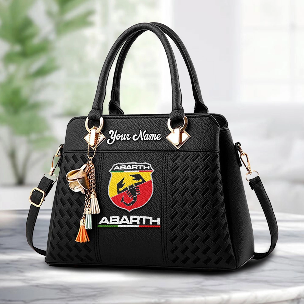 Abarth Logo Personalized PU Leather Handbag Custom Name For Women