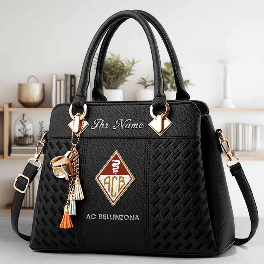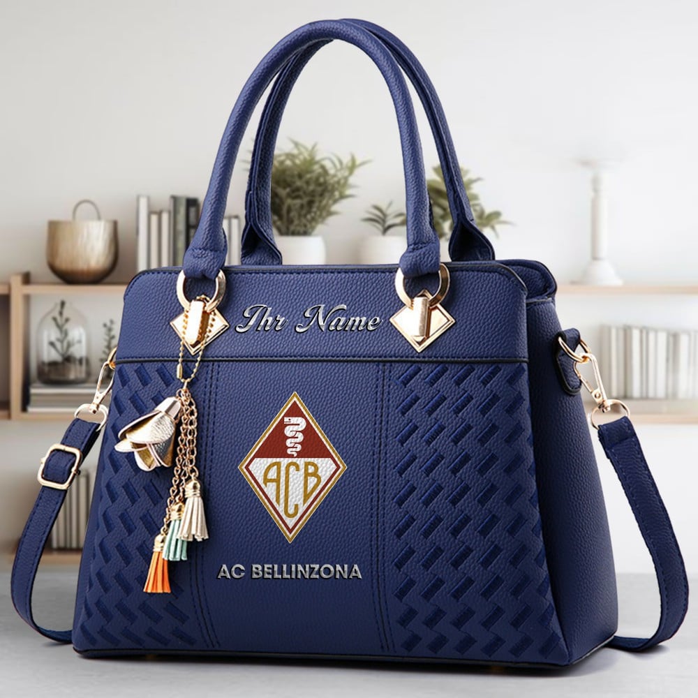 AC Bellinzona Logo Crossbody Zip Hand Bag With Tassel Custom Name For Women