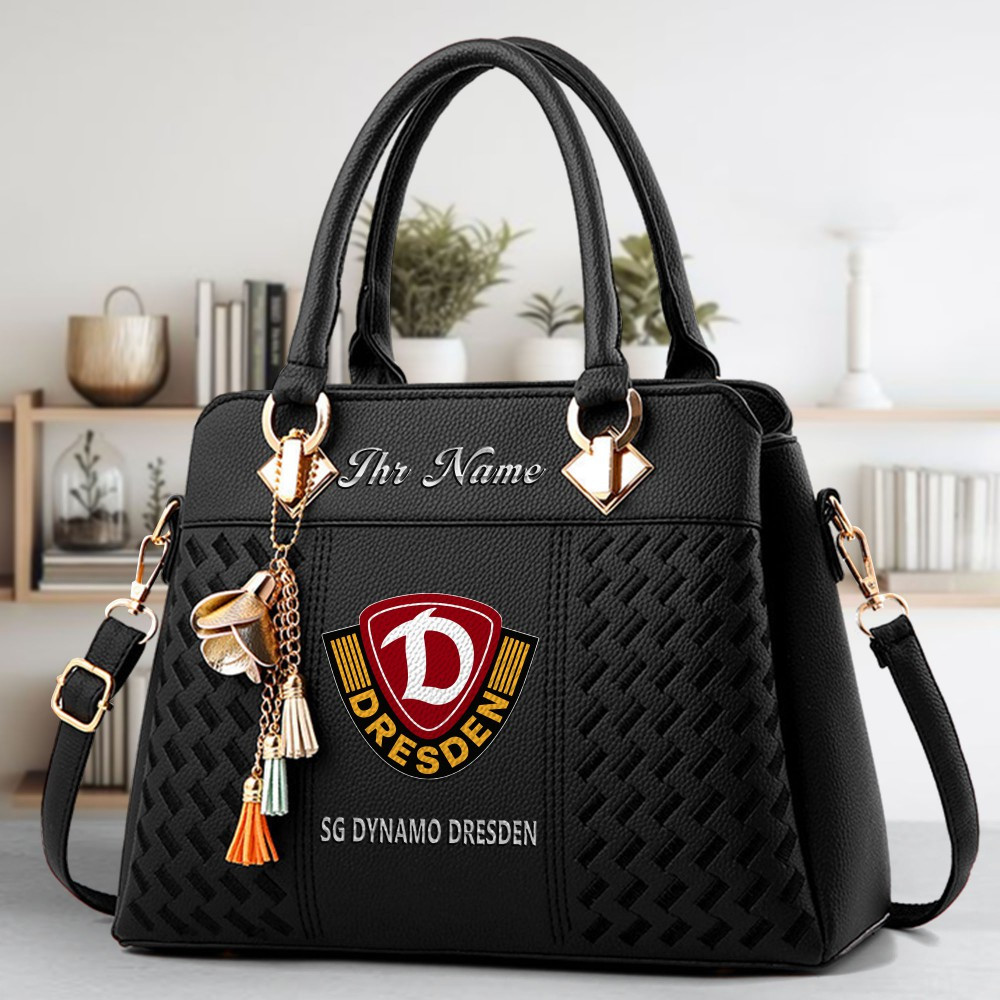 Dynamo Dresden Logo Crossbody Zip Hand Bag With Tassel Custom Name For Women