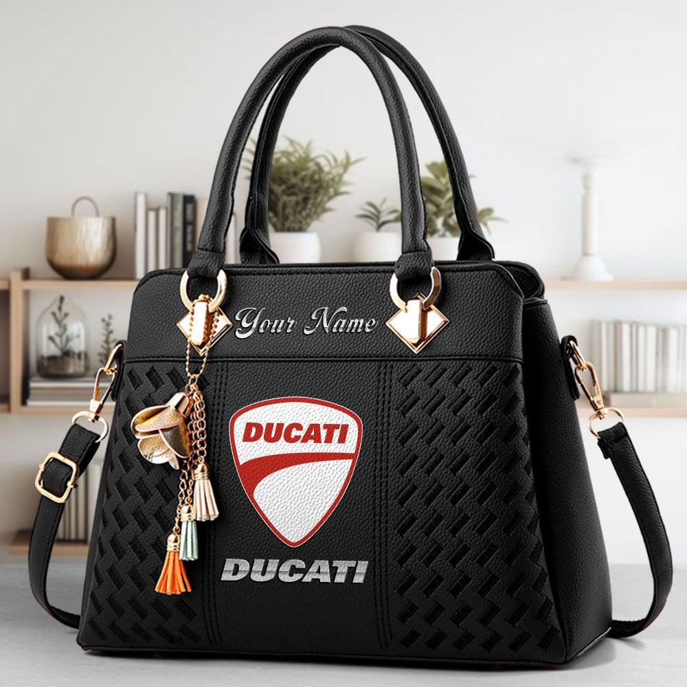 Ducati Logo Personalized PU Leather Handbag Custom Name For Women