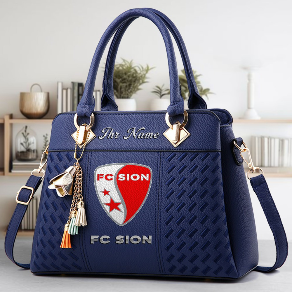 FC Sion Logo Crossbody Zip Hand Bag With Tassel Custom Name For Women
