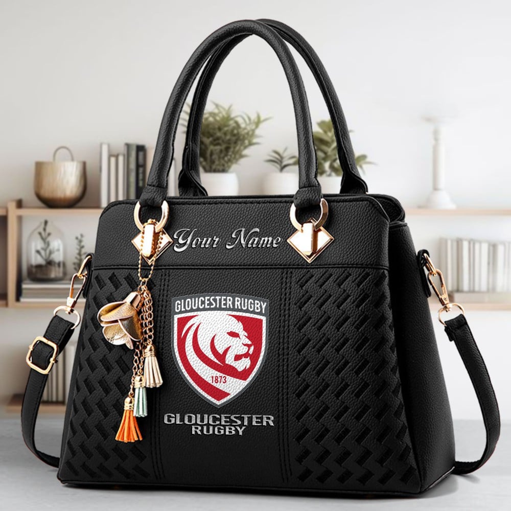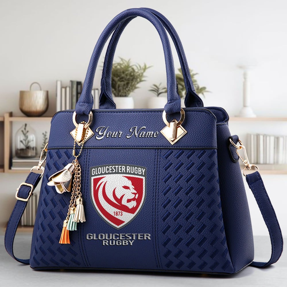 Gloucester Rugby Logo Crossbody Zip Hand Bag With Tassel Custom Name For Women