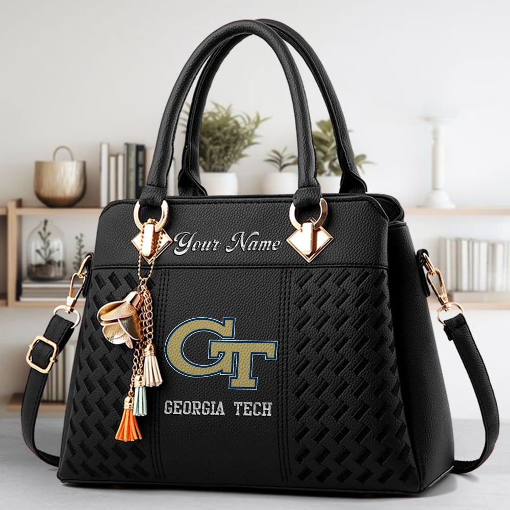 Georgia Tech Yellow Jackets Logo Crossbody Zip Hand Bag With Tassel Custom Name For Women