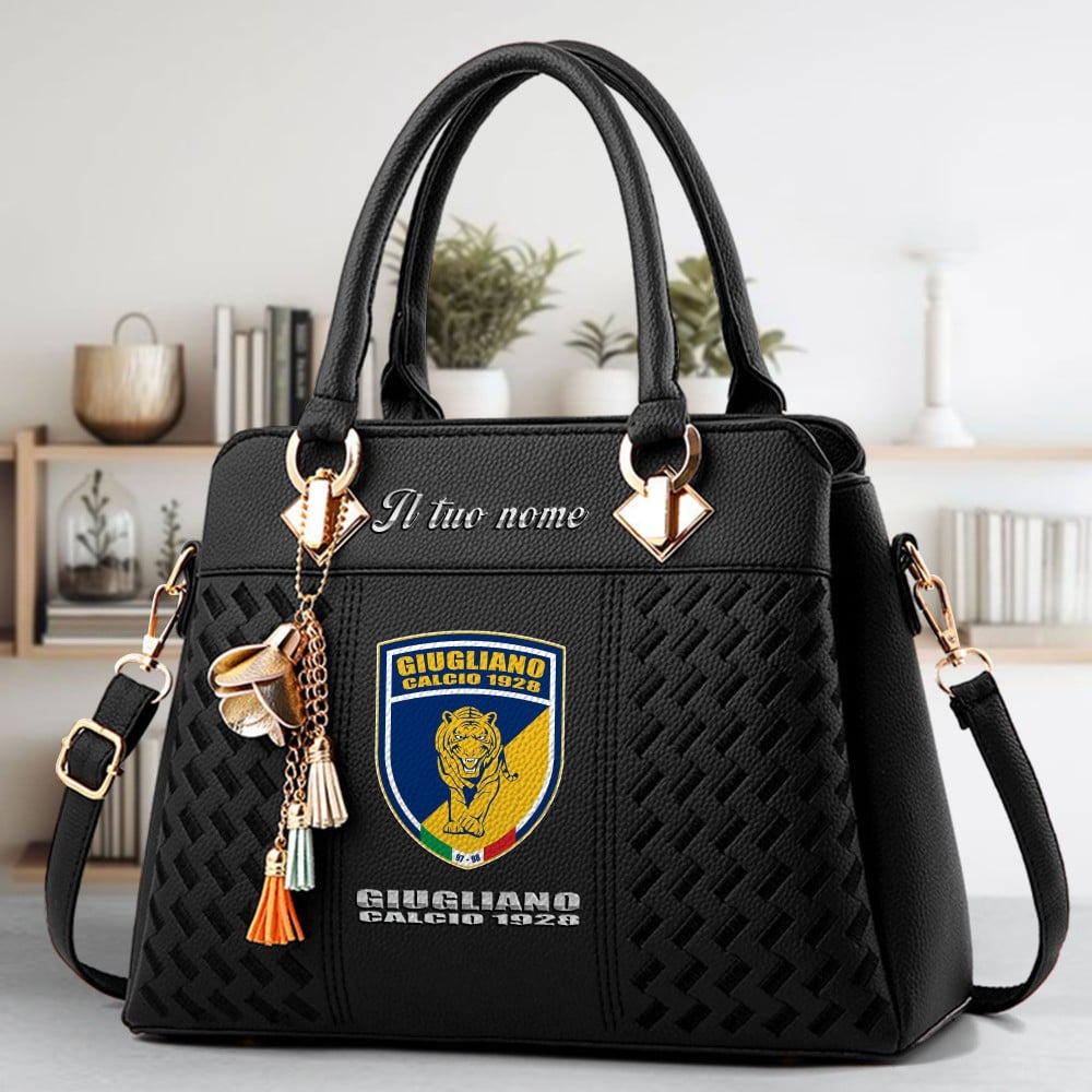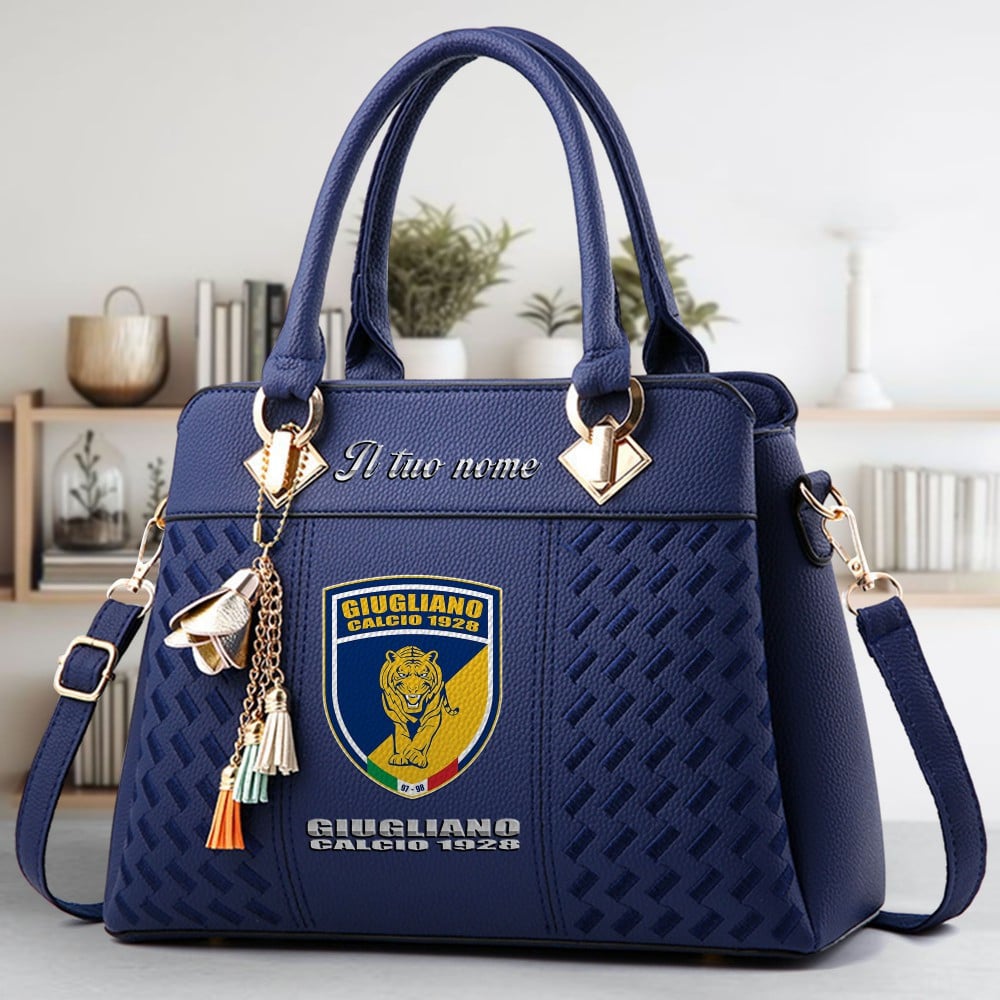 Giugliano Calcio 1928 Logo Crossbody Zip Hand Bag With Tassel Custom Name For Women