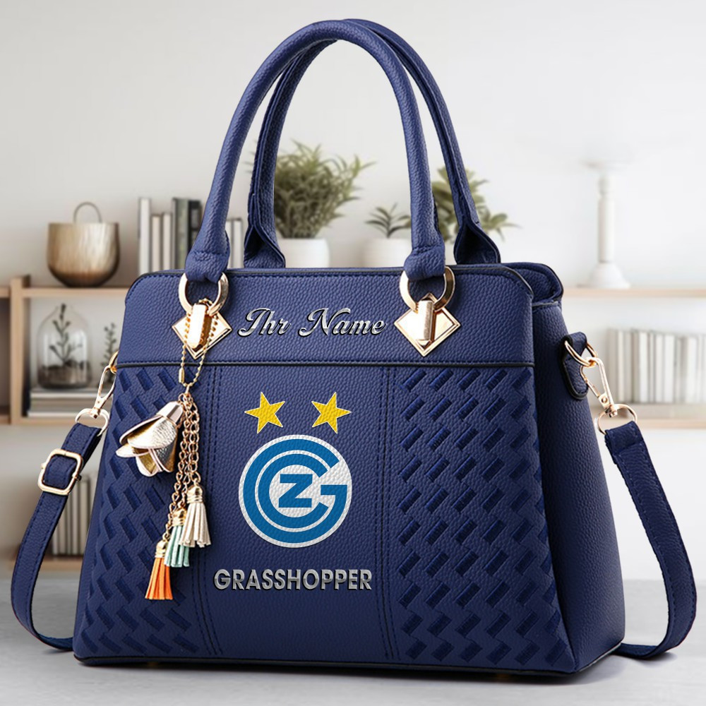 Grasshopper Club Zurich Logo Crossbody Zip Hand Bag With Tassel Custom Name For Women
