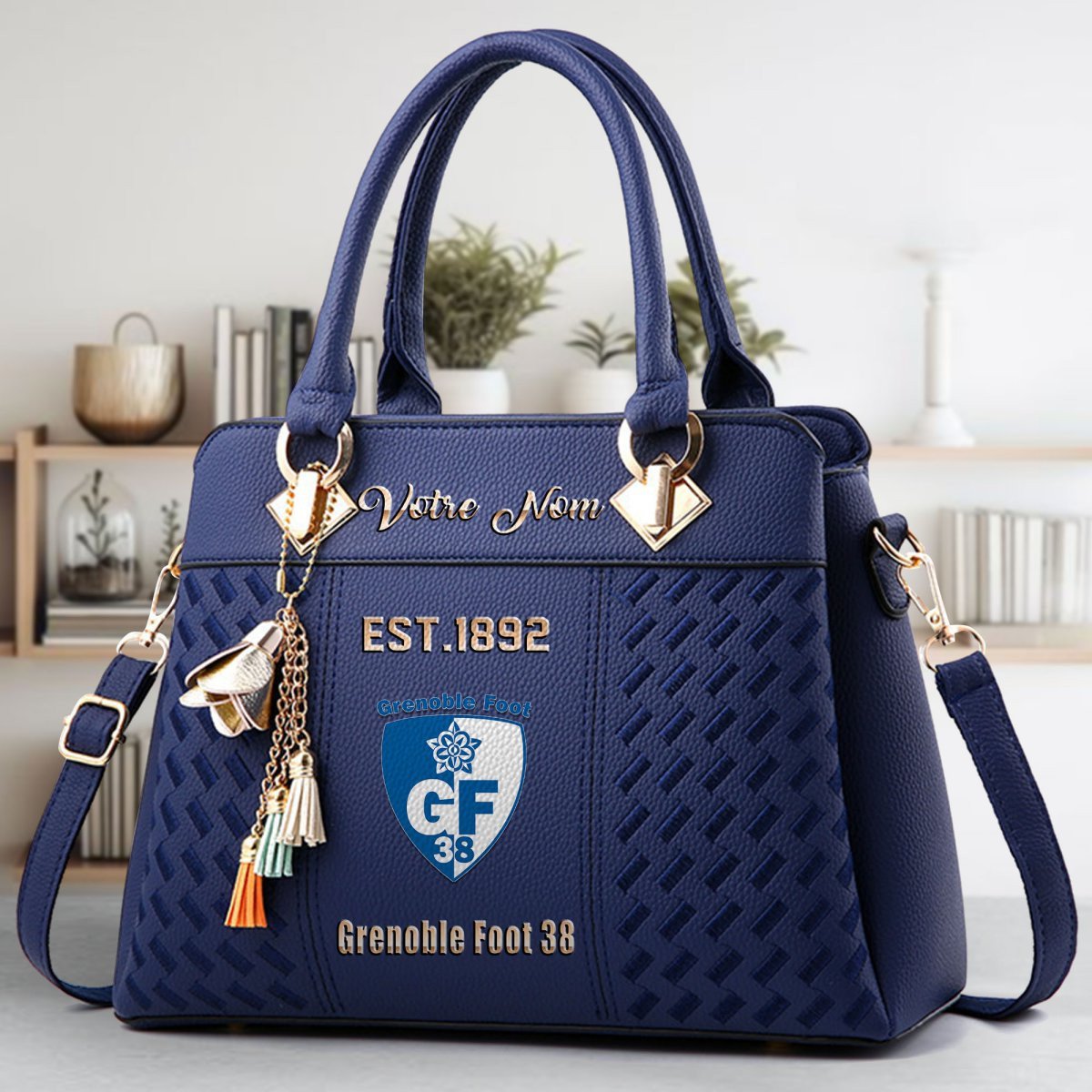 Grenoble Foot 38 Logo Crossbody Zip Hand Bag With Tassel Custom Name For Women