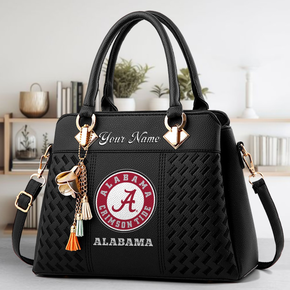 Alabama Crimson Tide Logo Crossbody Zip Hand Bag With Tassel Custom Name For Women