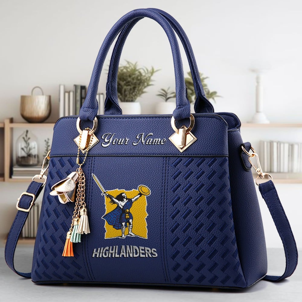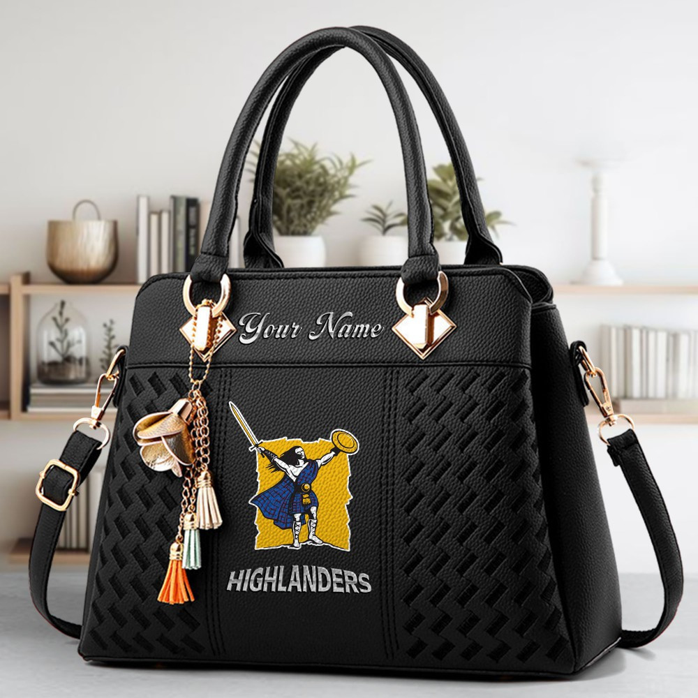 Highlanders Logo Crossbody Zip Hand Bag With Tassel Custom Name For Women