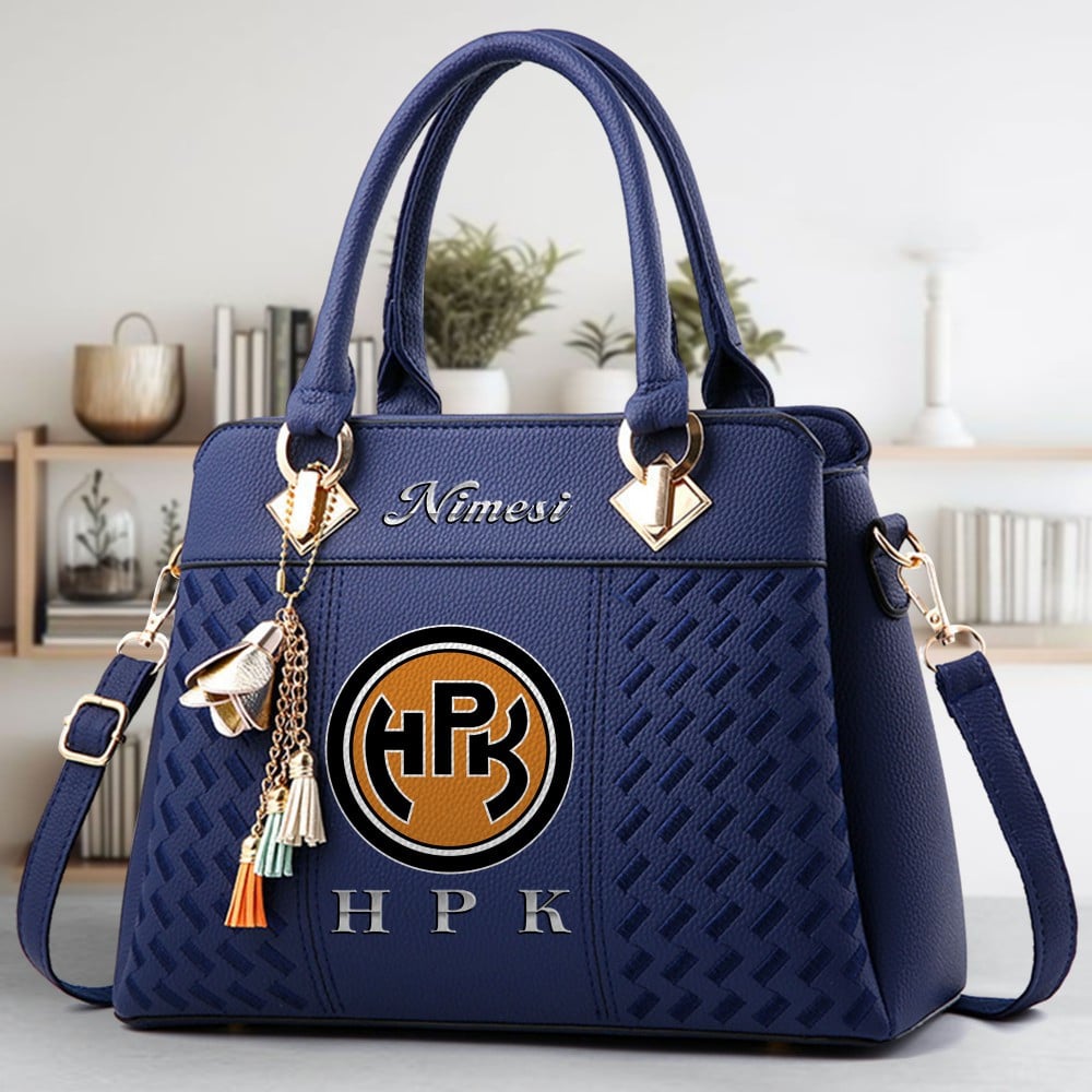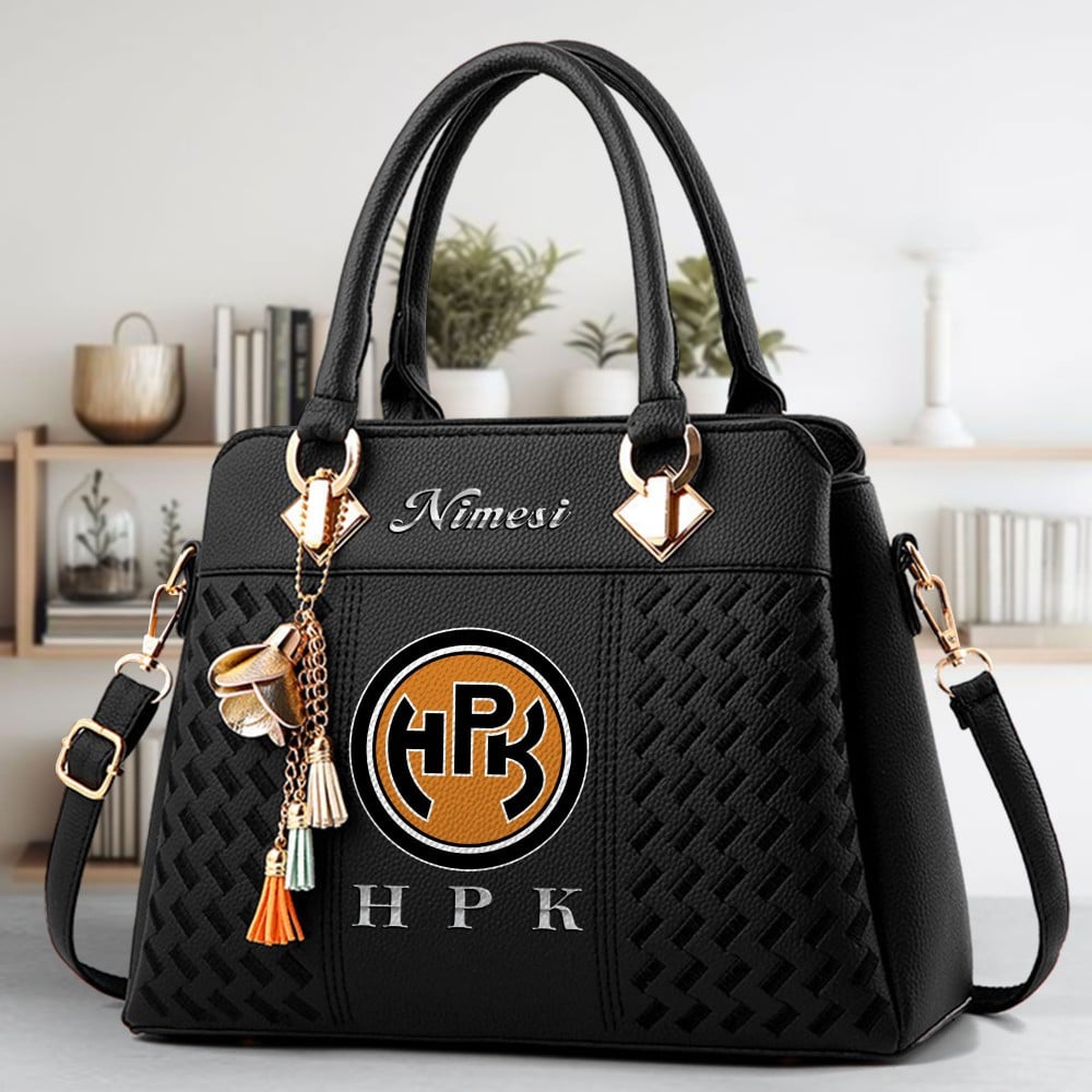 HPK Logo Crossbody Zip Hand Bag With Tassel Custom Name For Women