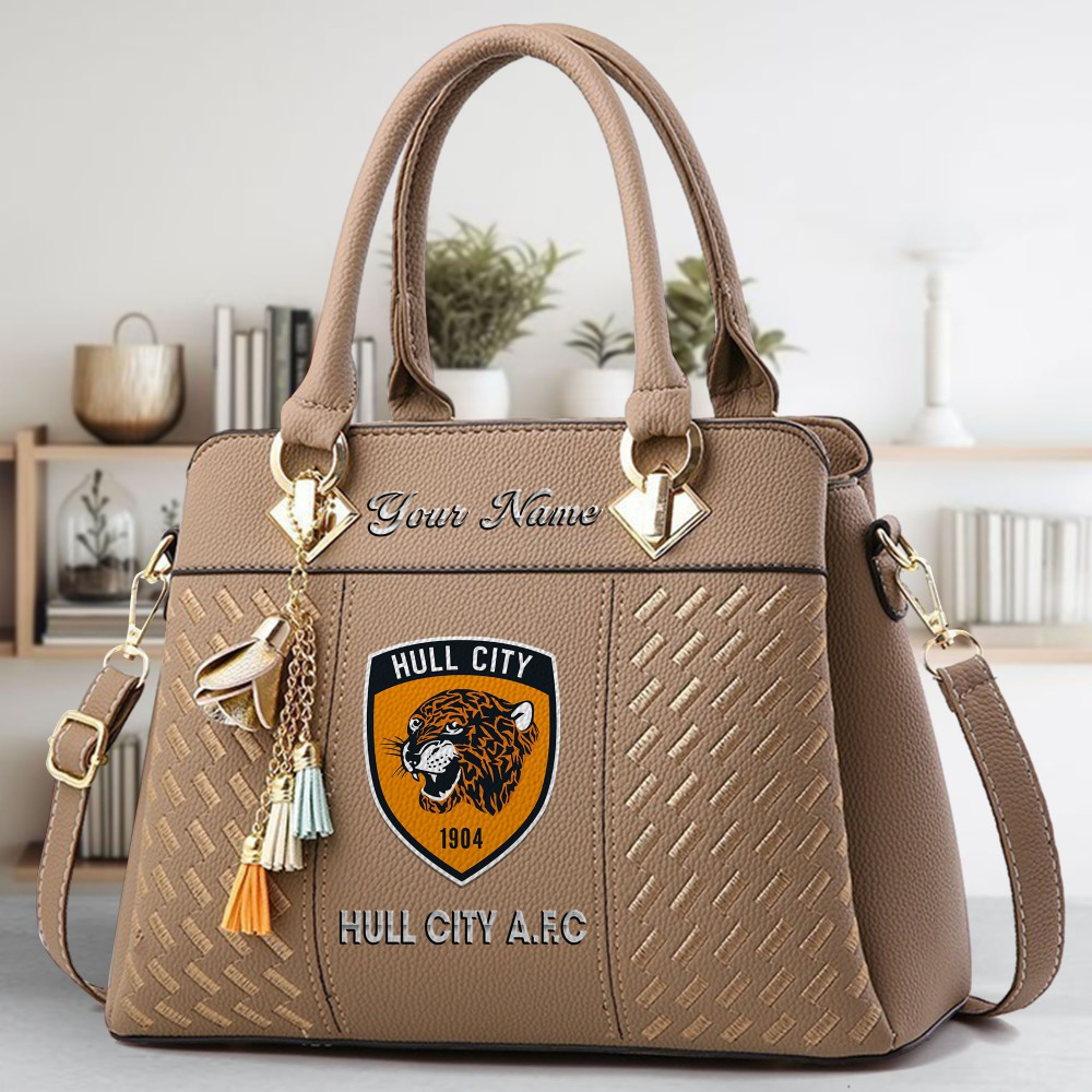 Hull City Logo Crossbody Zip Hand Bag With Tassel Custom Name For Women