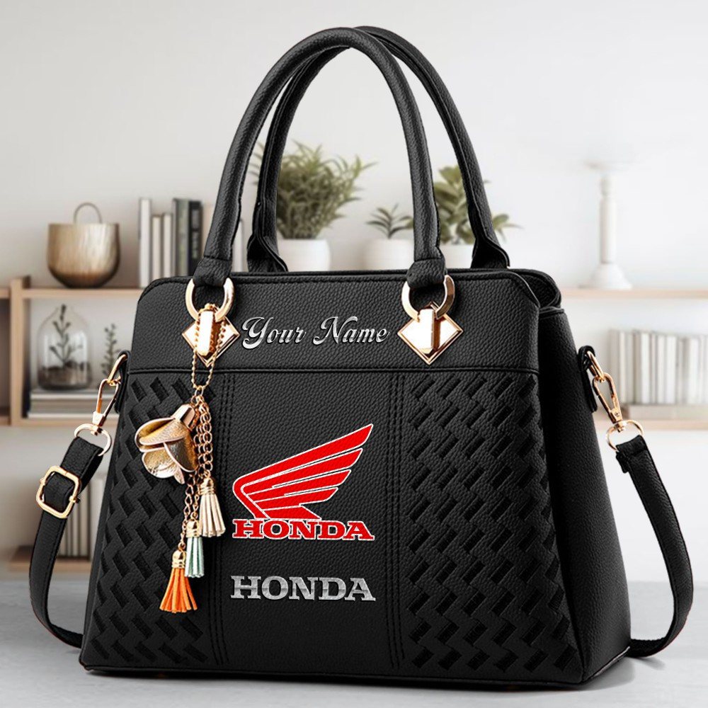 Honda Motorcycle Logo Crossbody Zip Hand Bag With Tassel Custom Name For Women