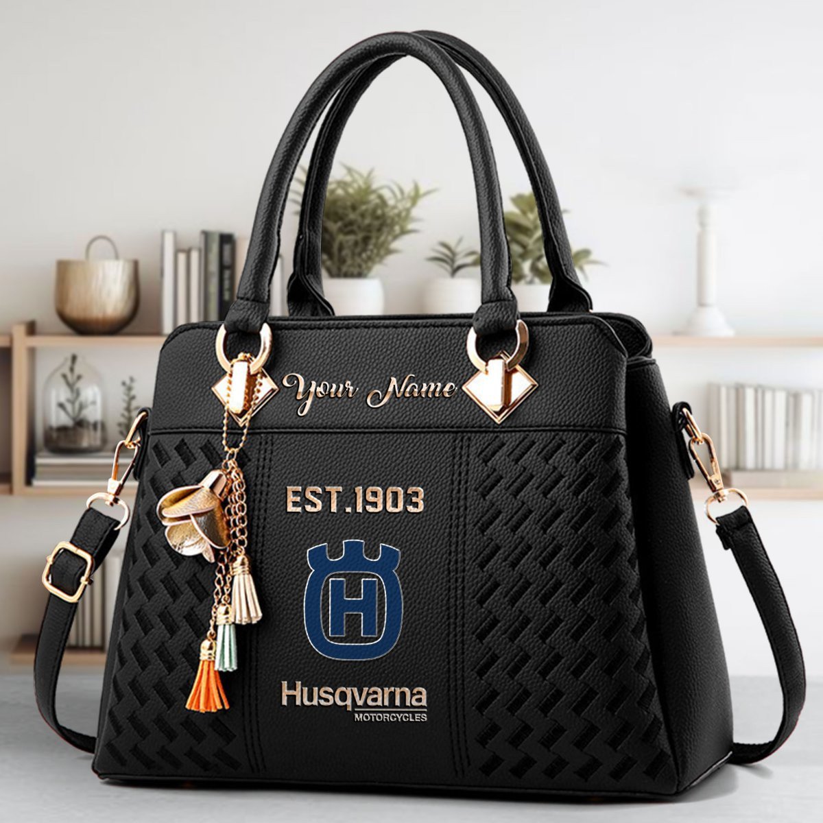 Husqvarna Logo Personalized PU Leather Handbag Custom Name For Women