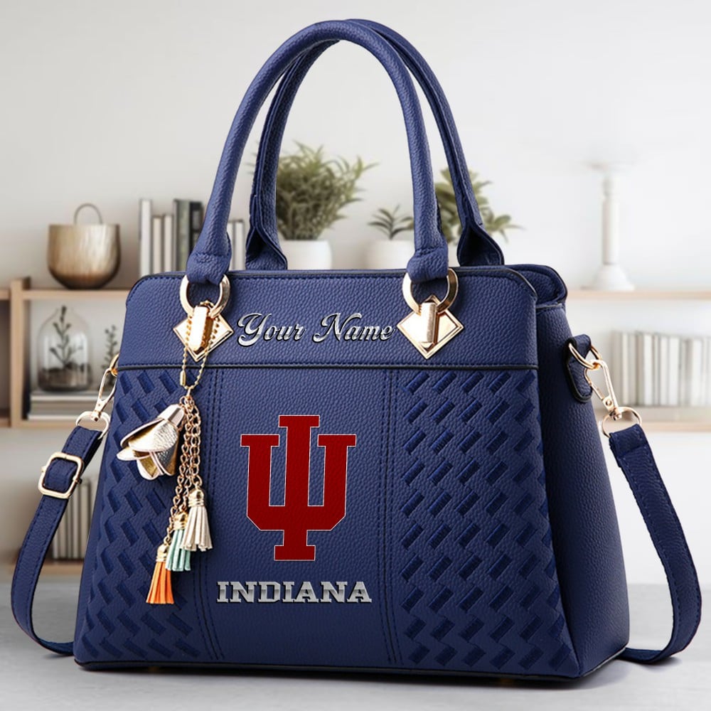 Indiana Hoosiers Logo Crossbody Zip Hand Bag With Tassel Custom Name For Women