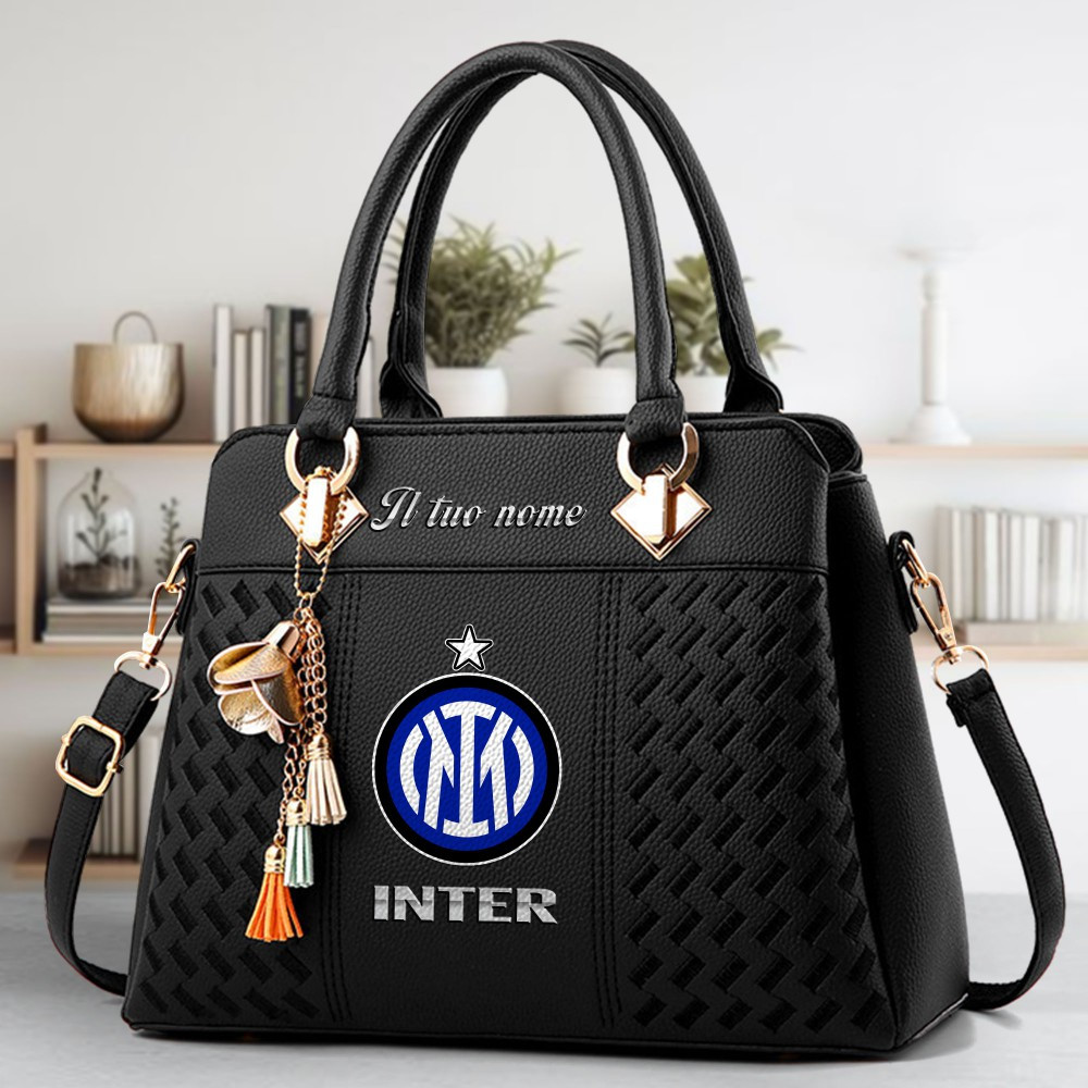 Inter Logo Crossbody Zip Hand Bag With Tassel Custom Name For Women