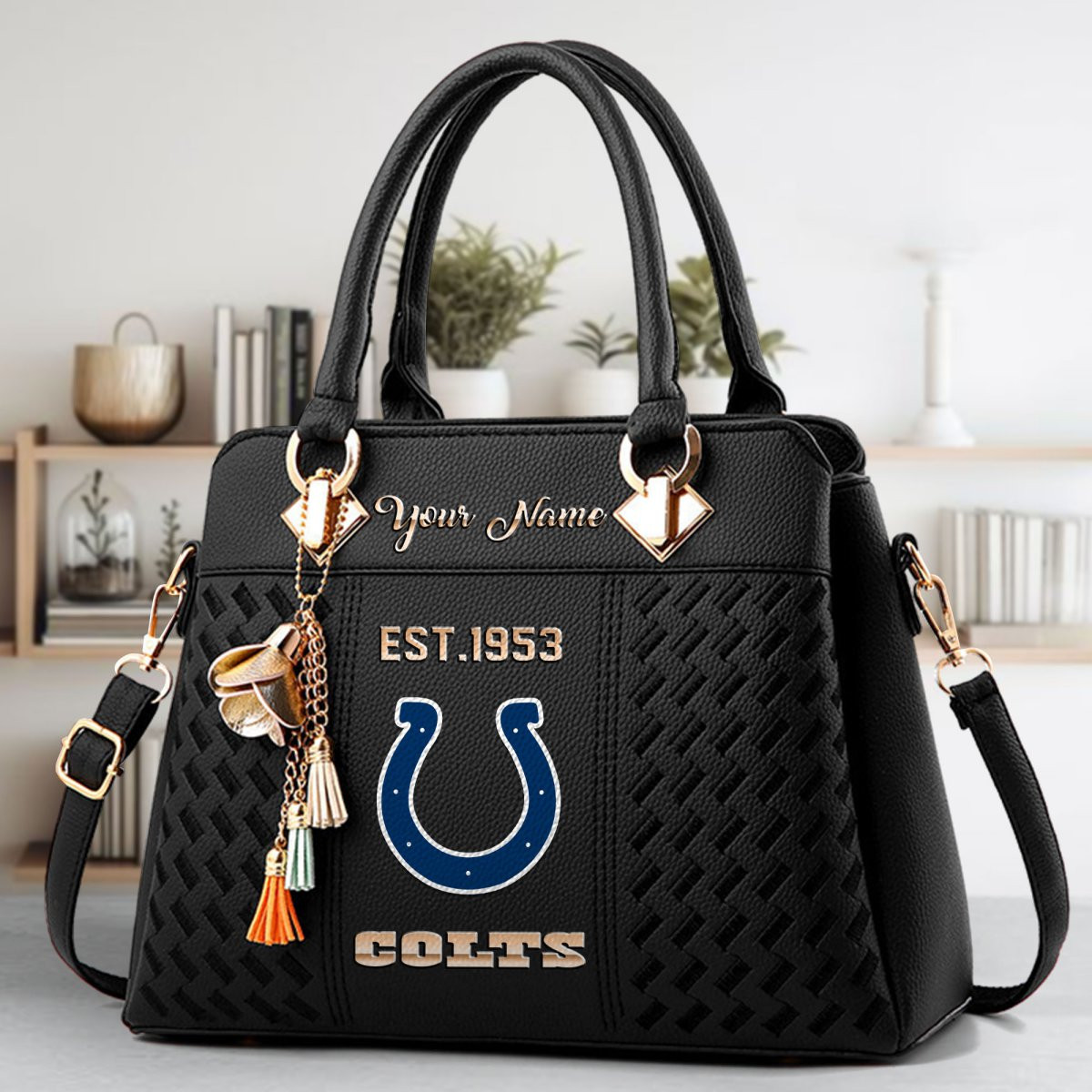 Indianapolis Colts Logo Crossbody Zip Hand Bag With Tassel Custom Name For Women
