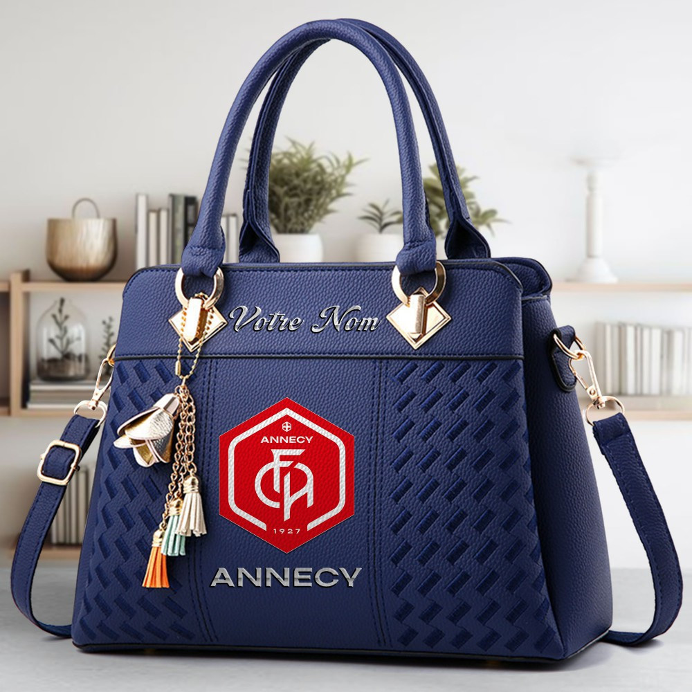 Annecy FC Logo Crossbody Zip Hand Bag With Tassel Custom Name For Women