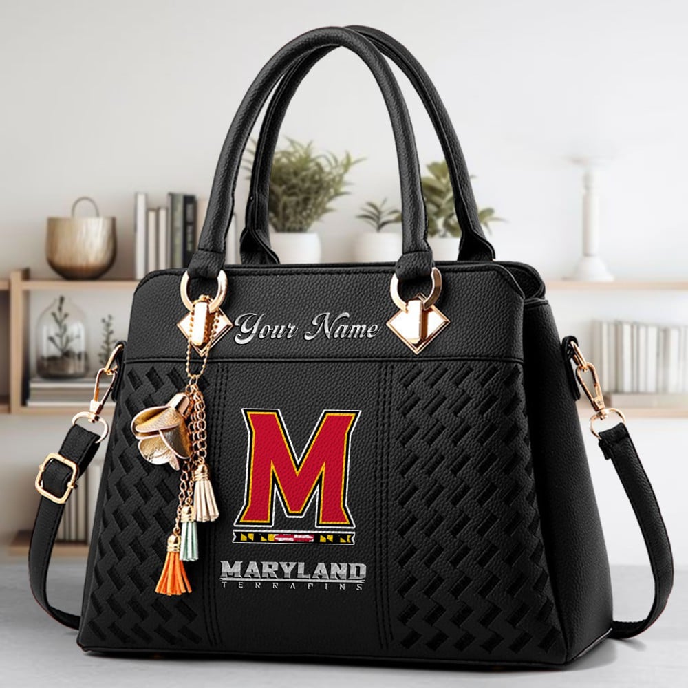 Maryland Terrapins Logo Crossbody Zip Hand Bag With Tassel Custom Name For Women
