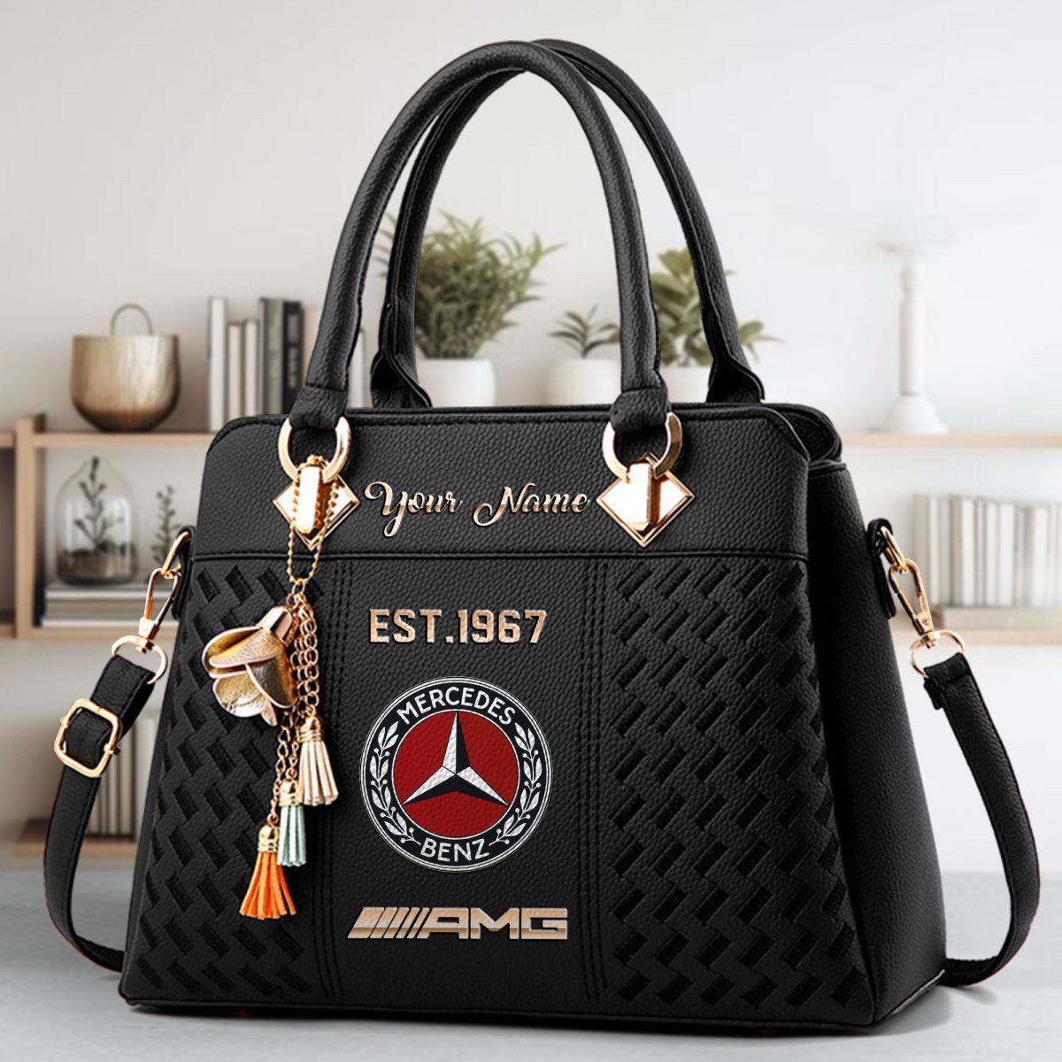 Mercedes-AMG Crossbody Zip Handbag With Tassel Custom Name For Women
