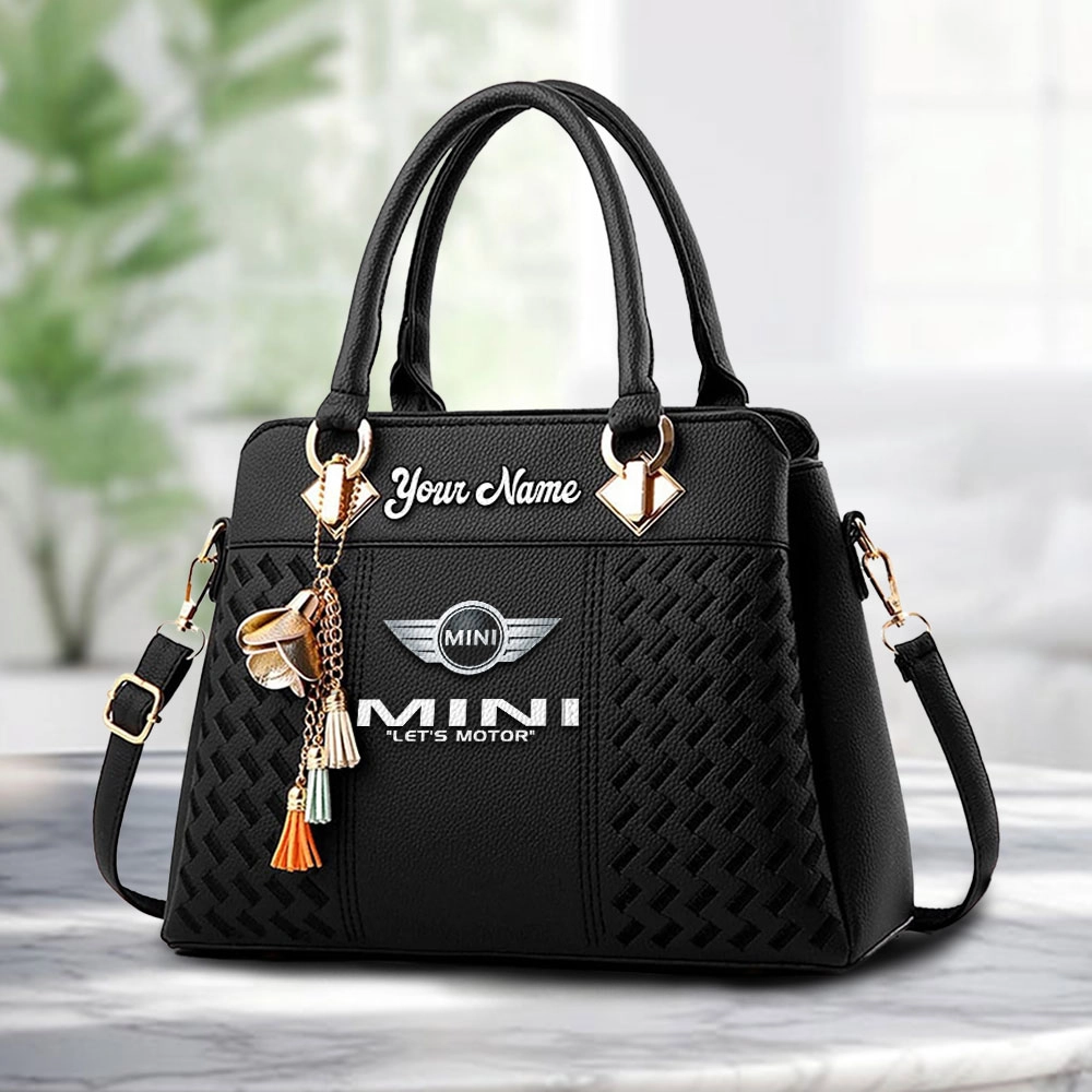 Minicooper Logo Personalized PU Leather Handbag Custom Name For Women