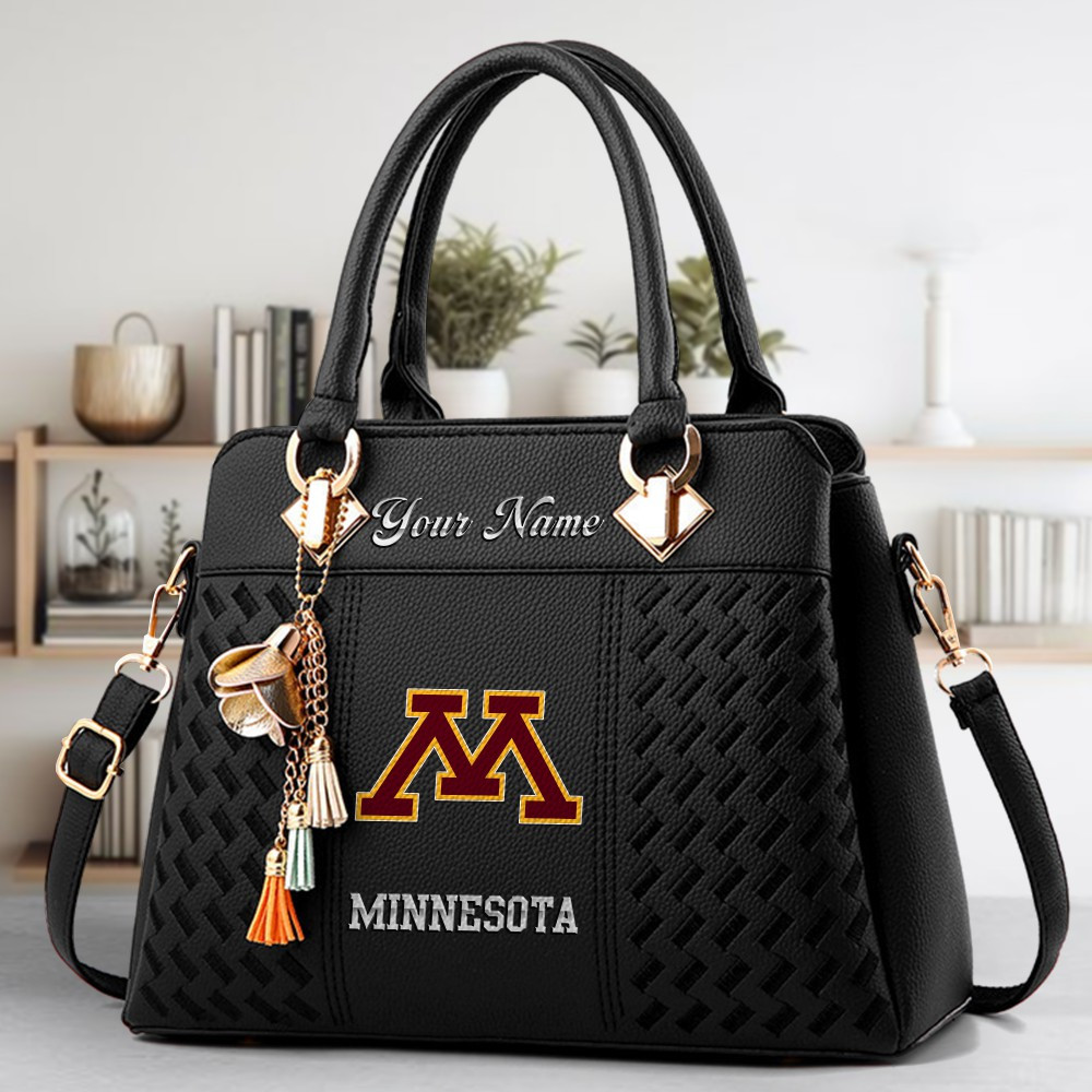 Minnesota Golden Gophers Logo Crossbody Zip Hand Bag With Tassel Custom Name For Women