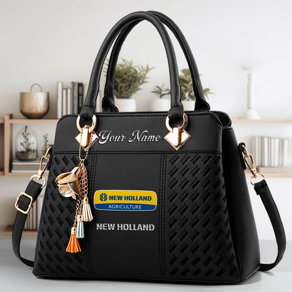 New Holland Logo Crossbody Zip Hand Bag With Tassel Custom Name For Women