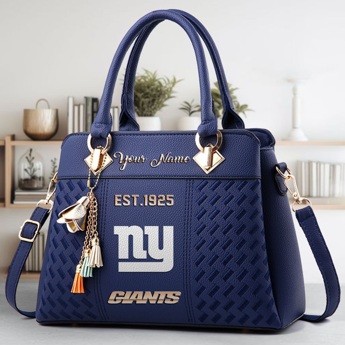 New York Giants Logo Crossbody Zip Hand Bag With Tassel Custom Name For Women