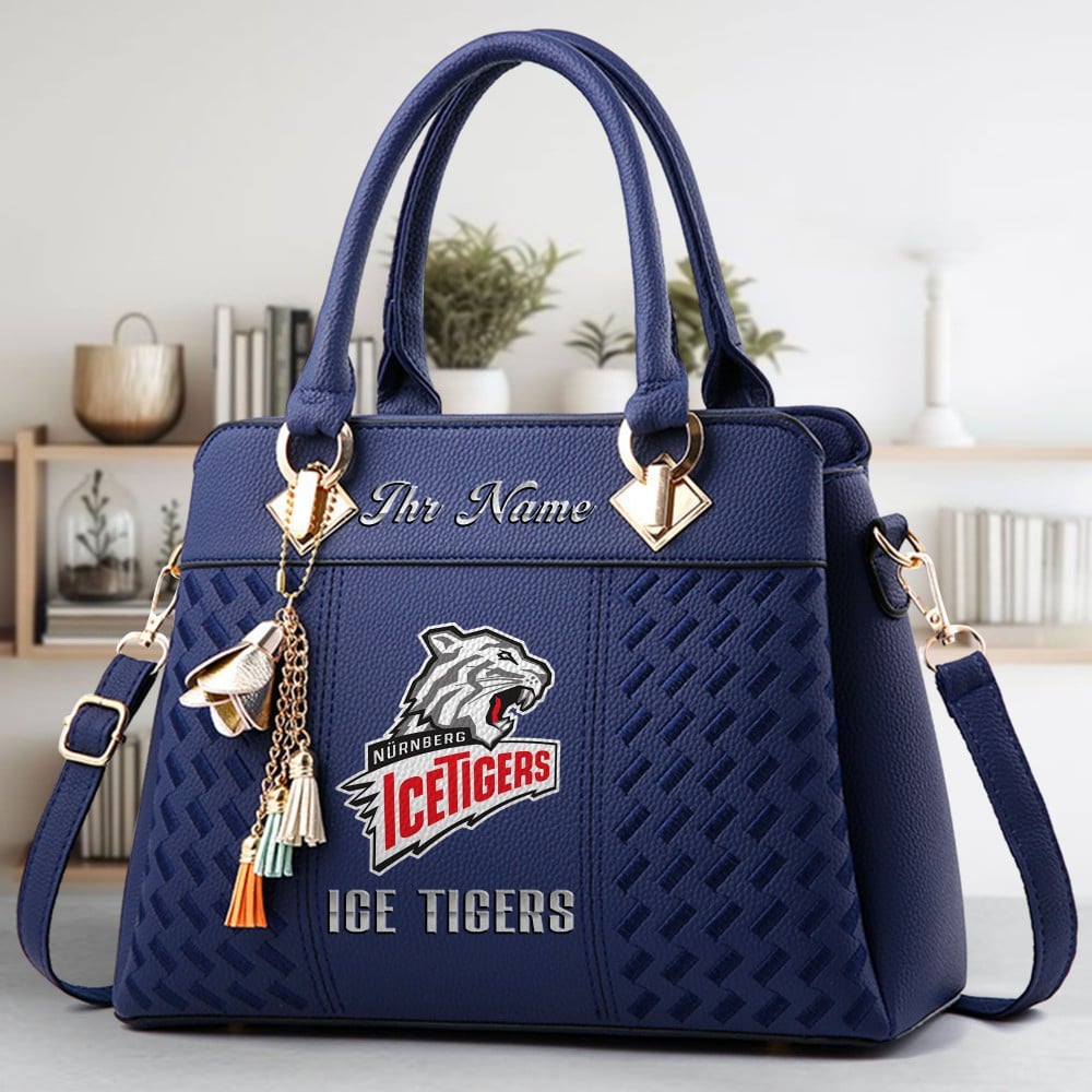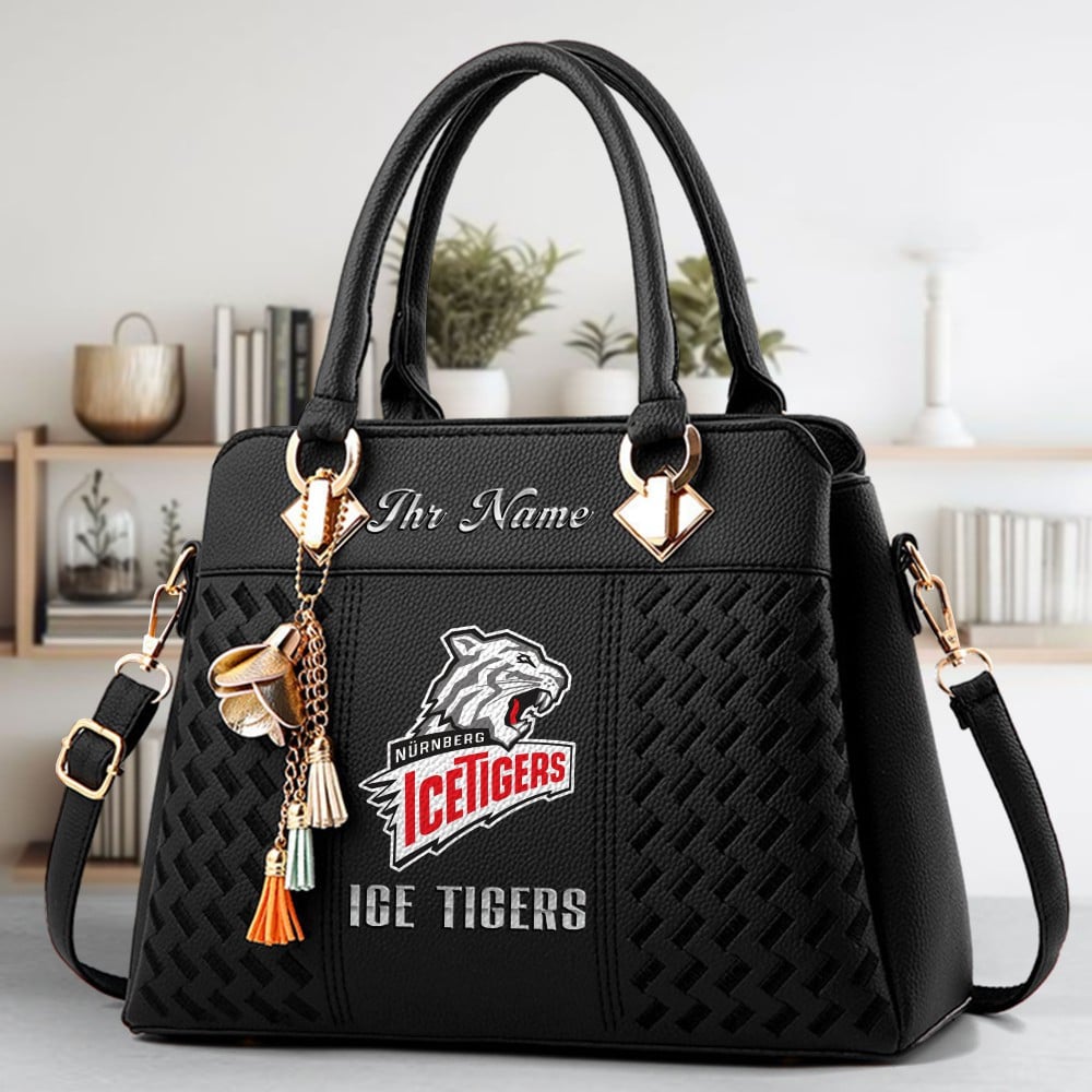 Nurnberg Ice Tigers Logo Crossbody Zip Hand Bag With Tassel Custom Name For Women