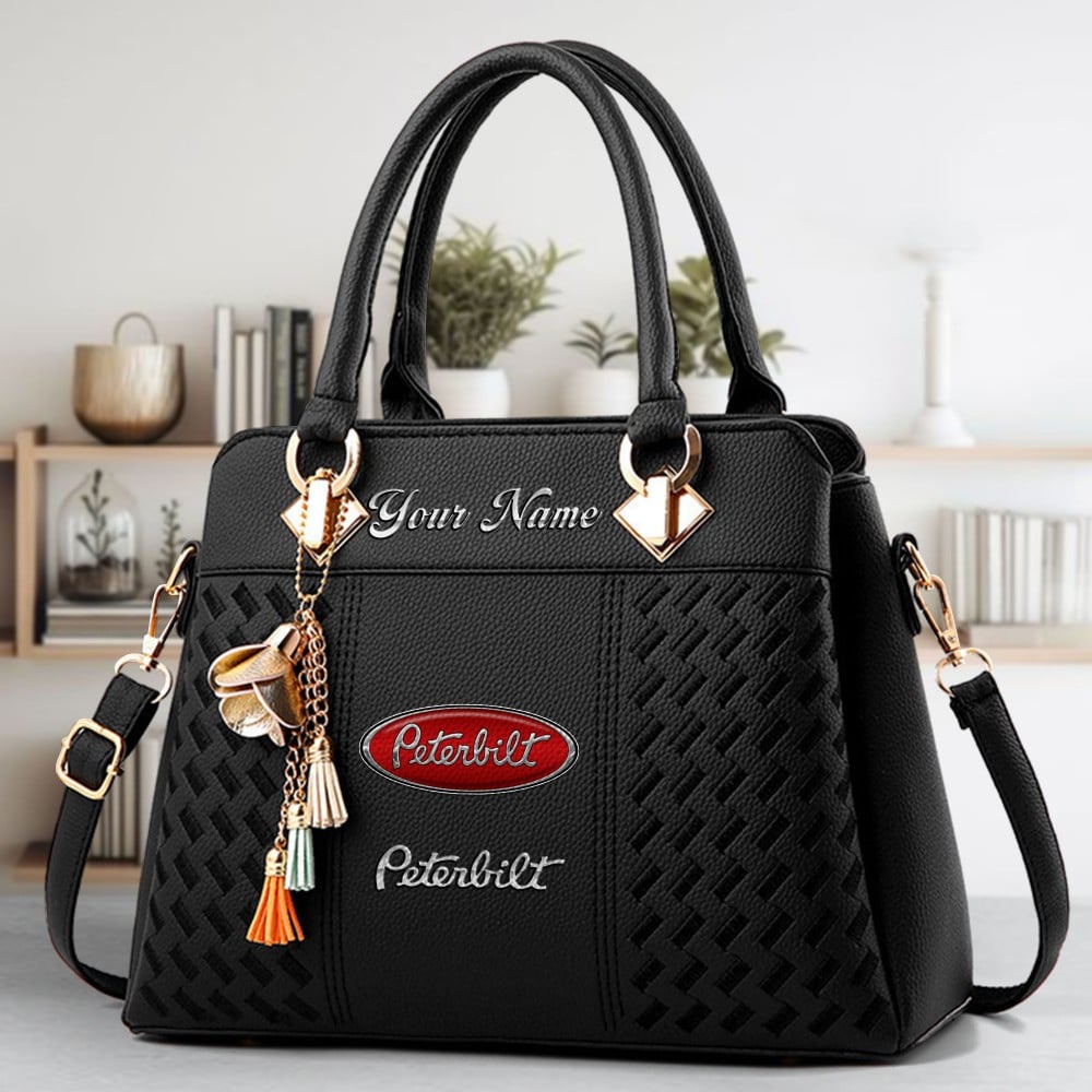 Peterbilt Logo Personalized PU Leather Handbag Custom Name For Women