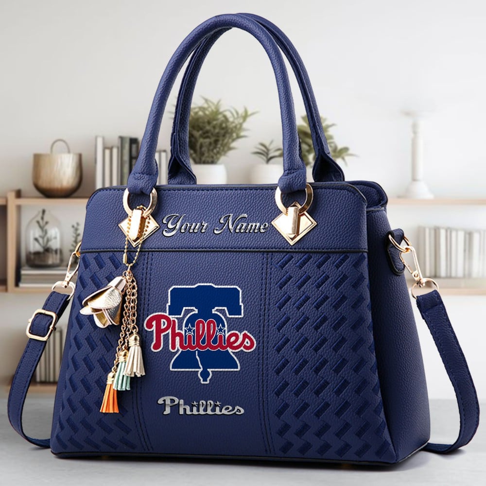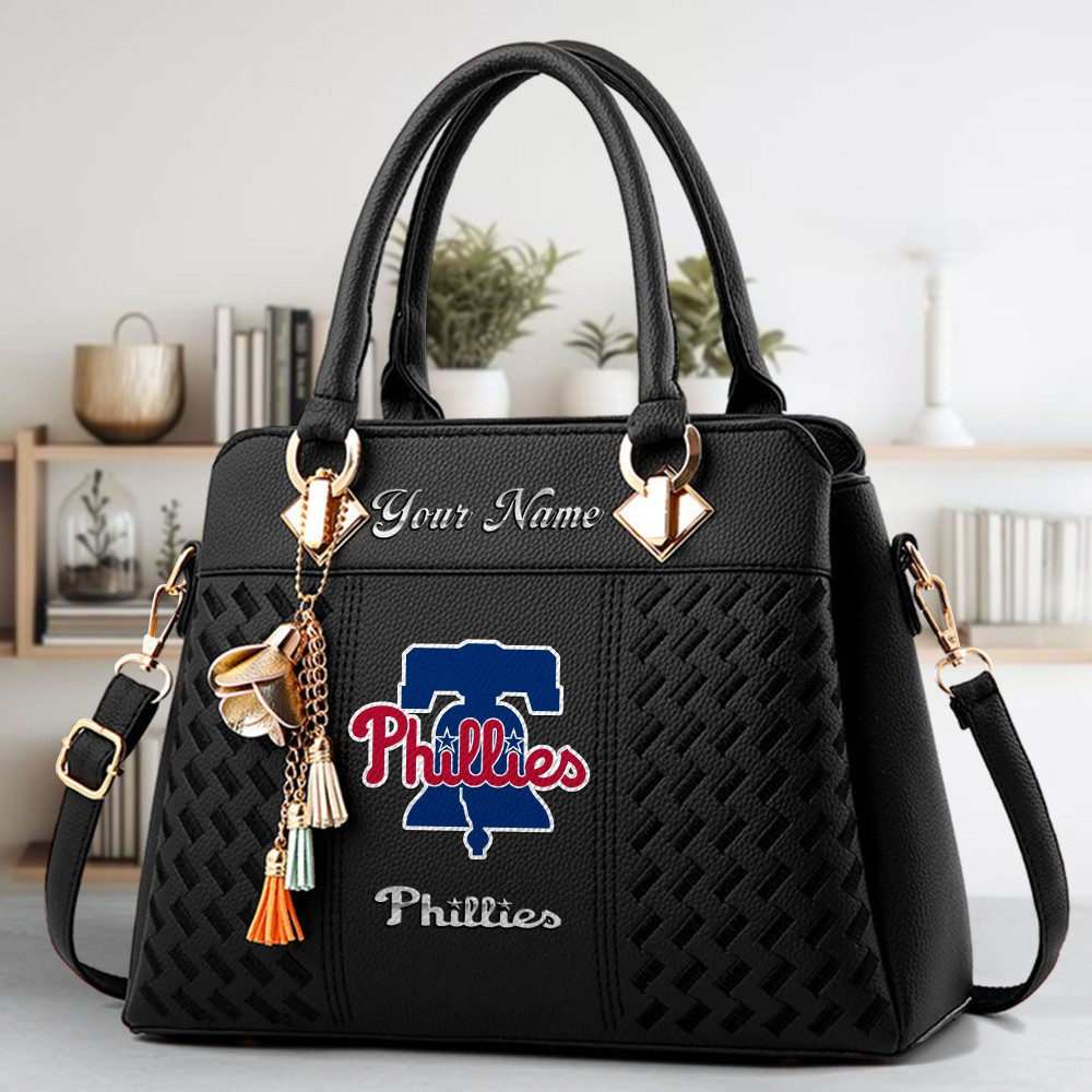 Philadelphia Phillies Logo Crossbody Zip Hand Bag With Tassel Custom Name For Women