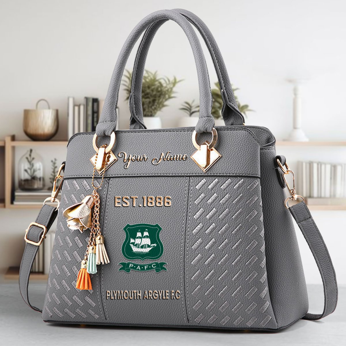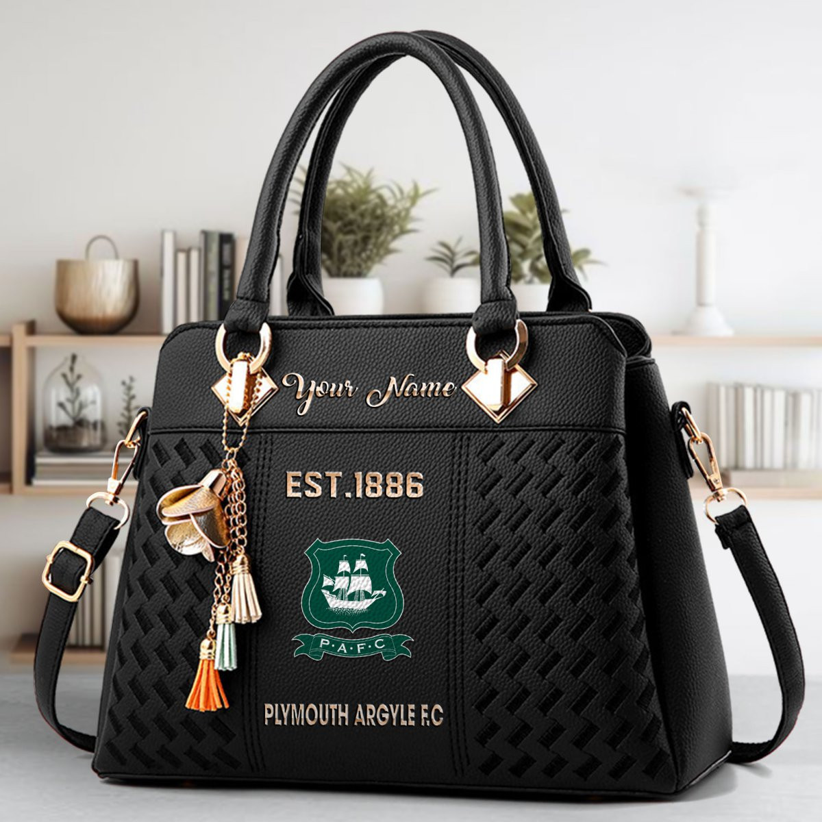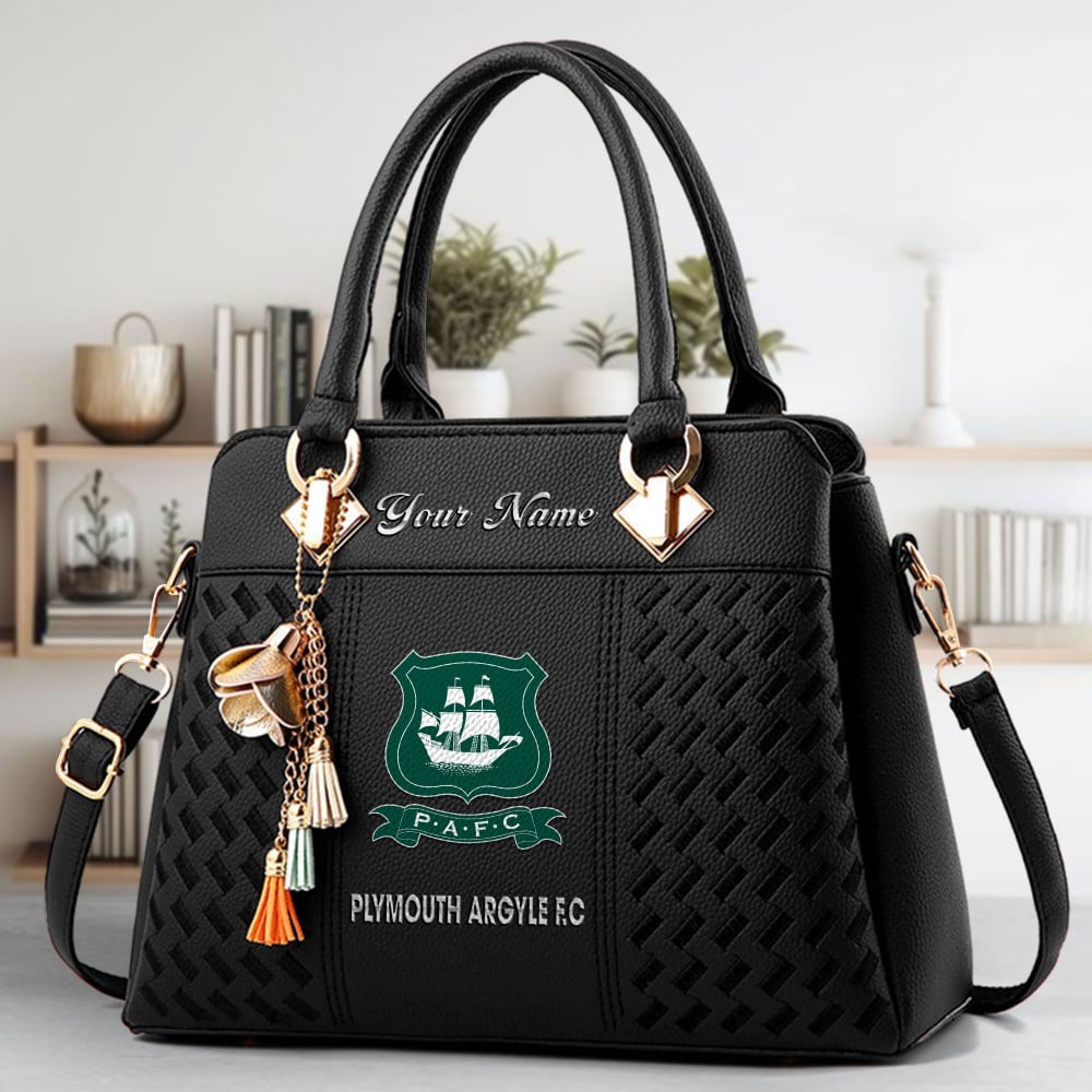Plymouth Argyle FC Logo Crossbody Zip Hand Bag With Tassel Custom Name For Women