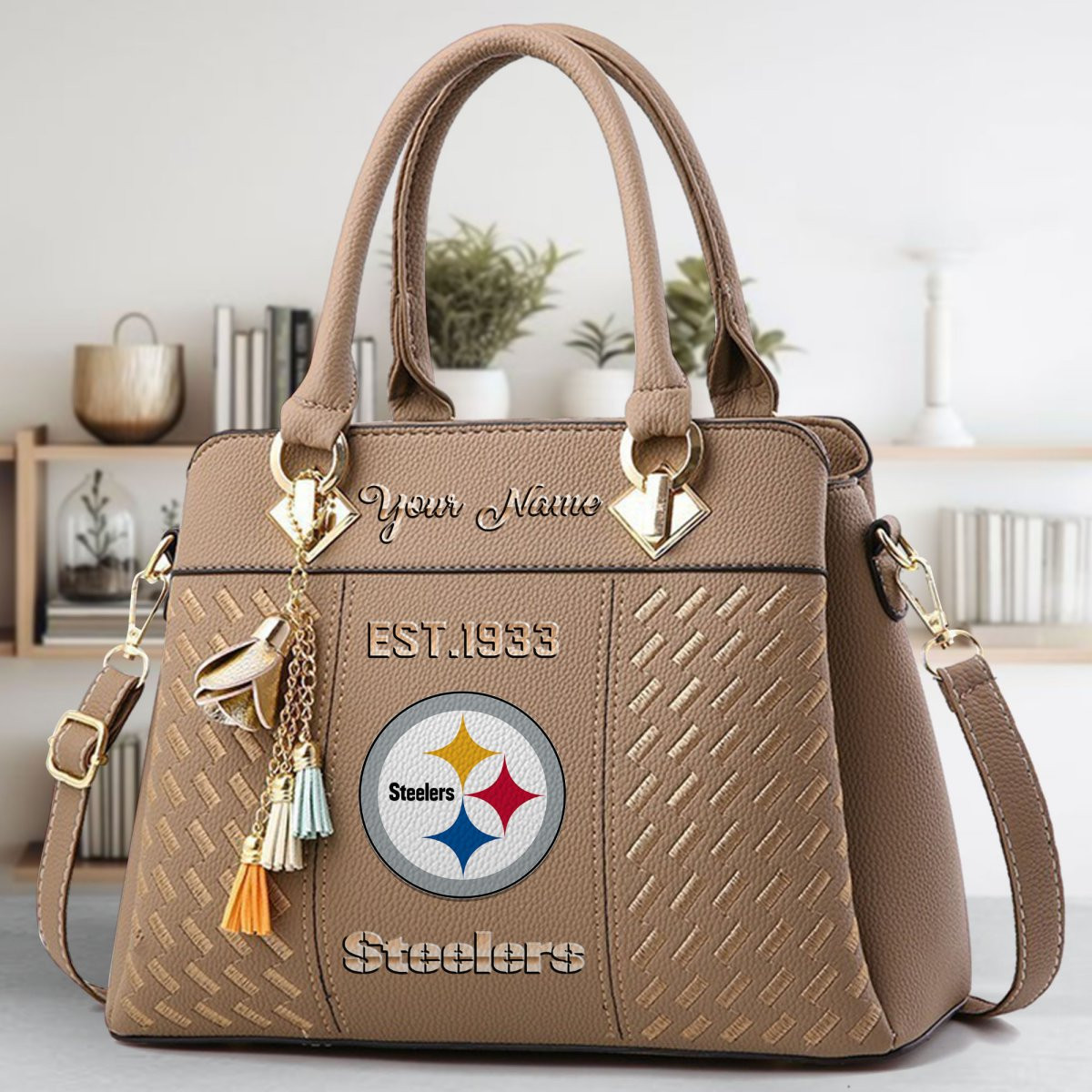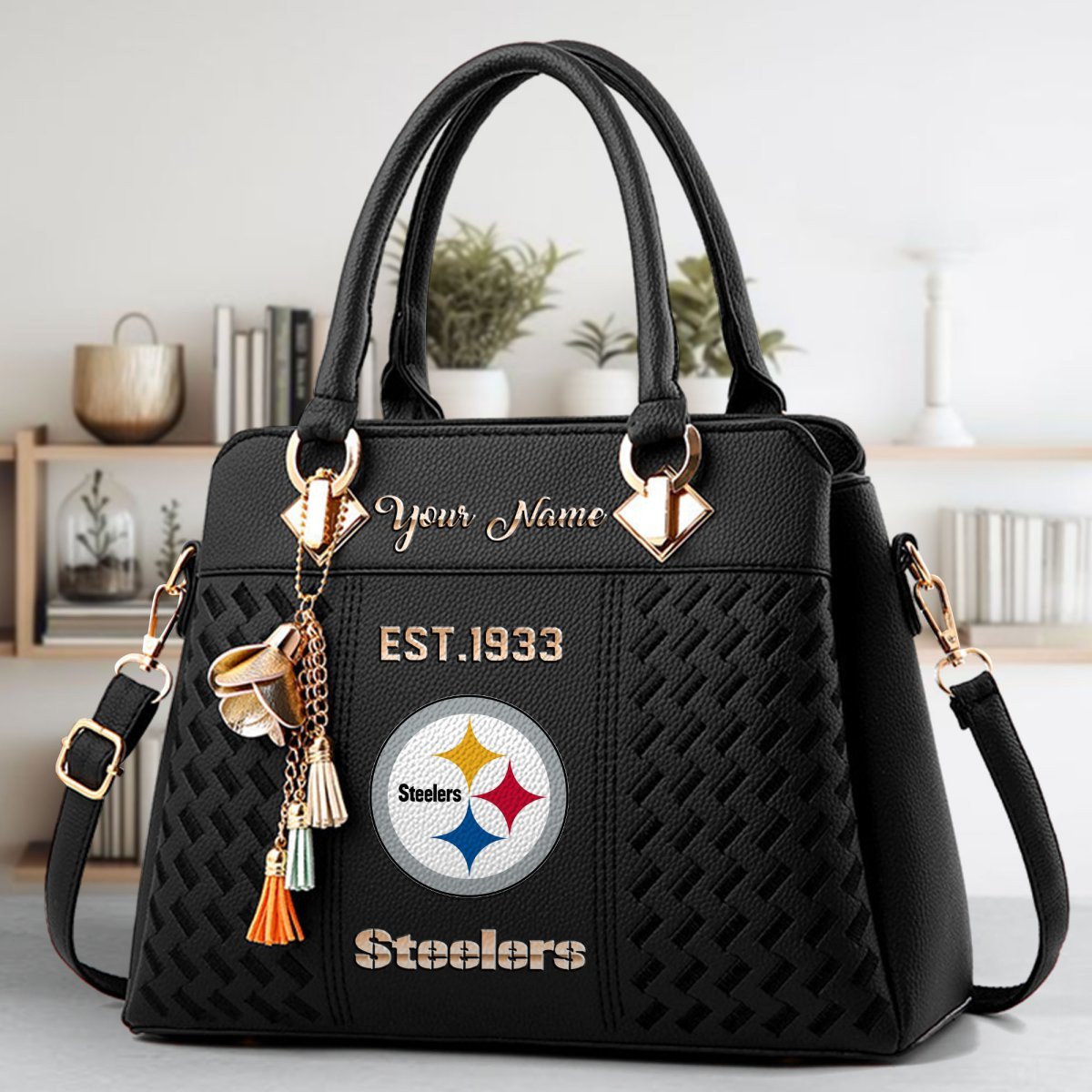 Pittsburgh Steelers Logo Crossbody Zip Hand Bag With Tassel Custom Name For Women