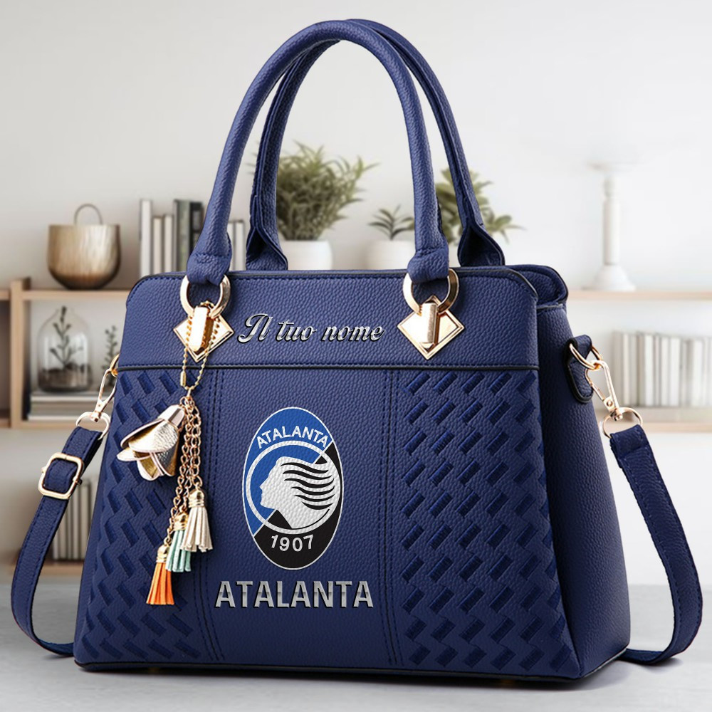 Atalanta Bergamasca Calcio Logo Crossbody Zip Hand Bag With Tassel Custom Name For Women