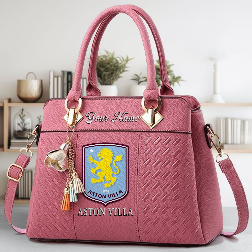 Aston Villa Crossbody Zip Handbag With Tassel Custom Name For Women
