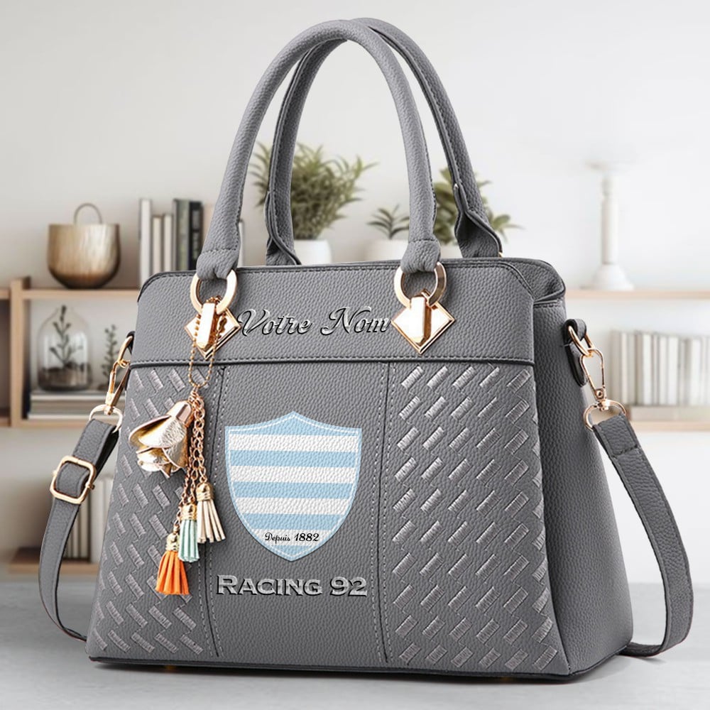 Racing 92 Logo Crossbody Zip Hand Bag With Tassel Custom Name For Women